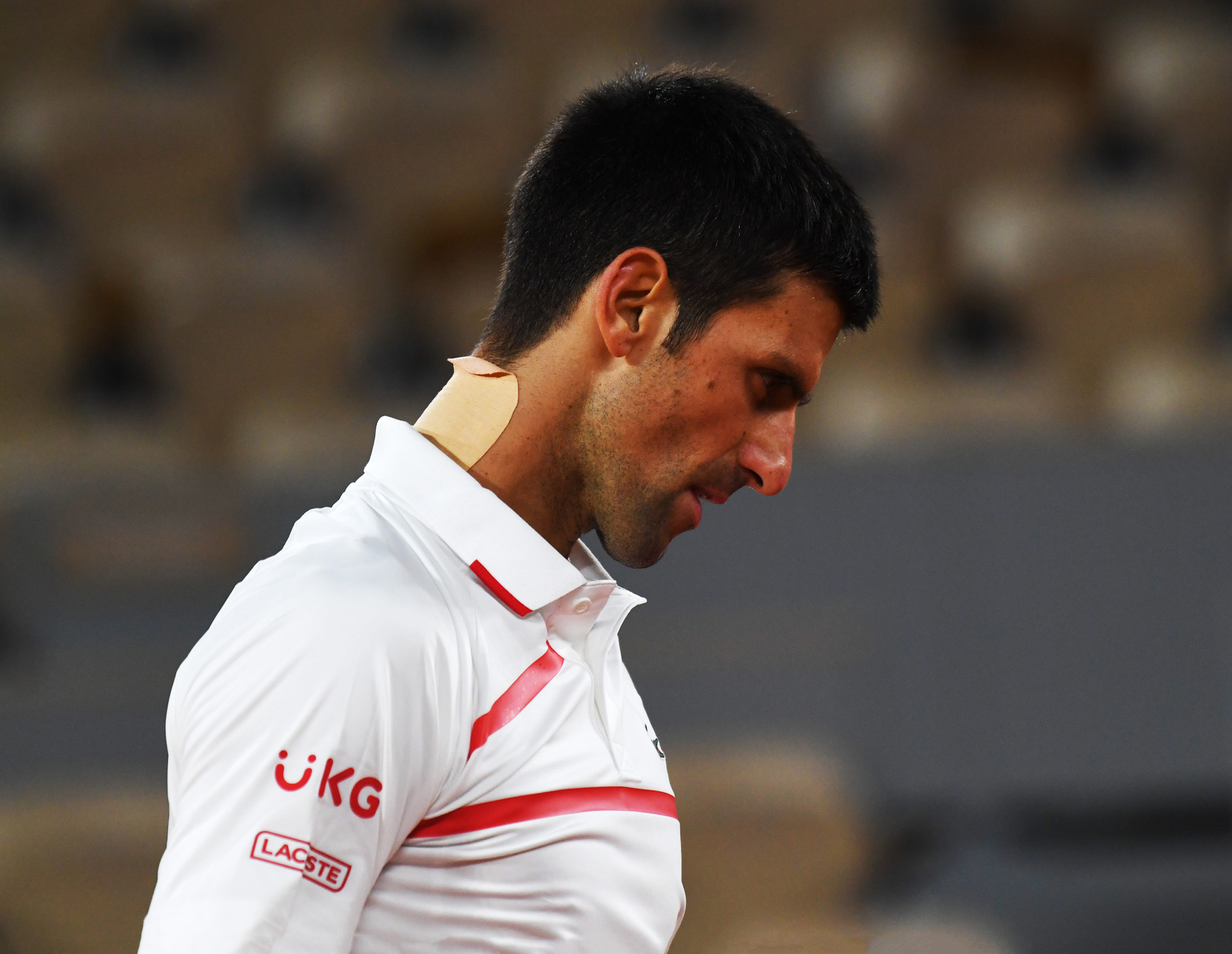 Roland Garros Paris French Open 2020 Day 11 071020 Patched up Novak Djokovic (SRB) beats Pablo Carreno Busta (ES) quarter final match Roger Parker International Sports Fotos Ltd/Alamy Live News