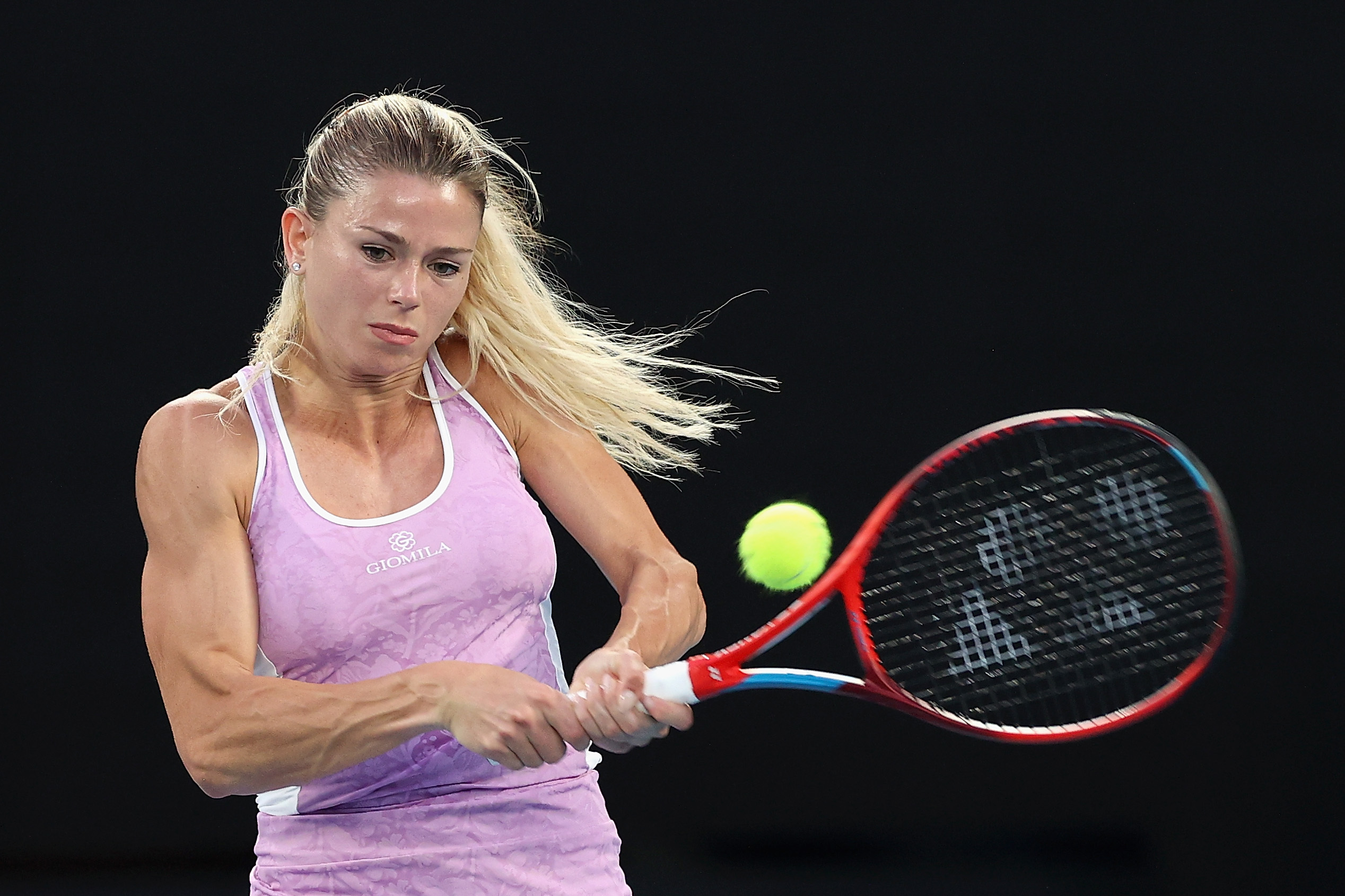 Camila GIORGI (ITA) plays a backhand during Round 3 of the Australian Open on Rod Laver Arena at Melbourne Park in Melbourne on Friday, January 21, 2022. MANDATORY PHOTO CREDIT Rob Prezioso/TENNIS AUSTRALIA