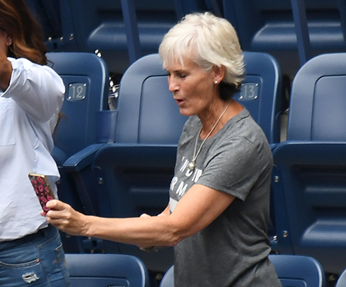 USTA Billie Jean King National Tennis Centre Flushing Meadows, New York 08/09/2018 Selfie tie - proud mum Judy Murray as Beth Mattek (USA) and son Jamie Murray (GBR) win Mixed Doubles Final Photo Roger Parker International Sports Fotos Ltd https://www.grandslamtennis.online