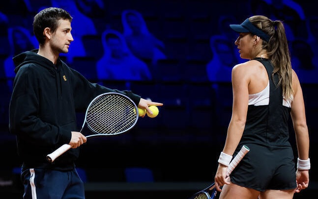 Raducanu lost to world No.2 Ons Jabeur in an exhibition match in Abu Dhabi on Friday as Sachs, 30, looked on.
