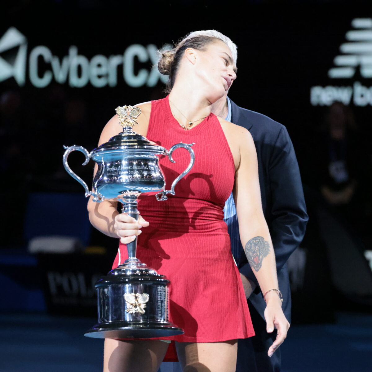 Main photo:- Aryna Sabalenka with 2024 Australian Open Trophy – ISF Ltd
