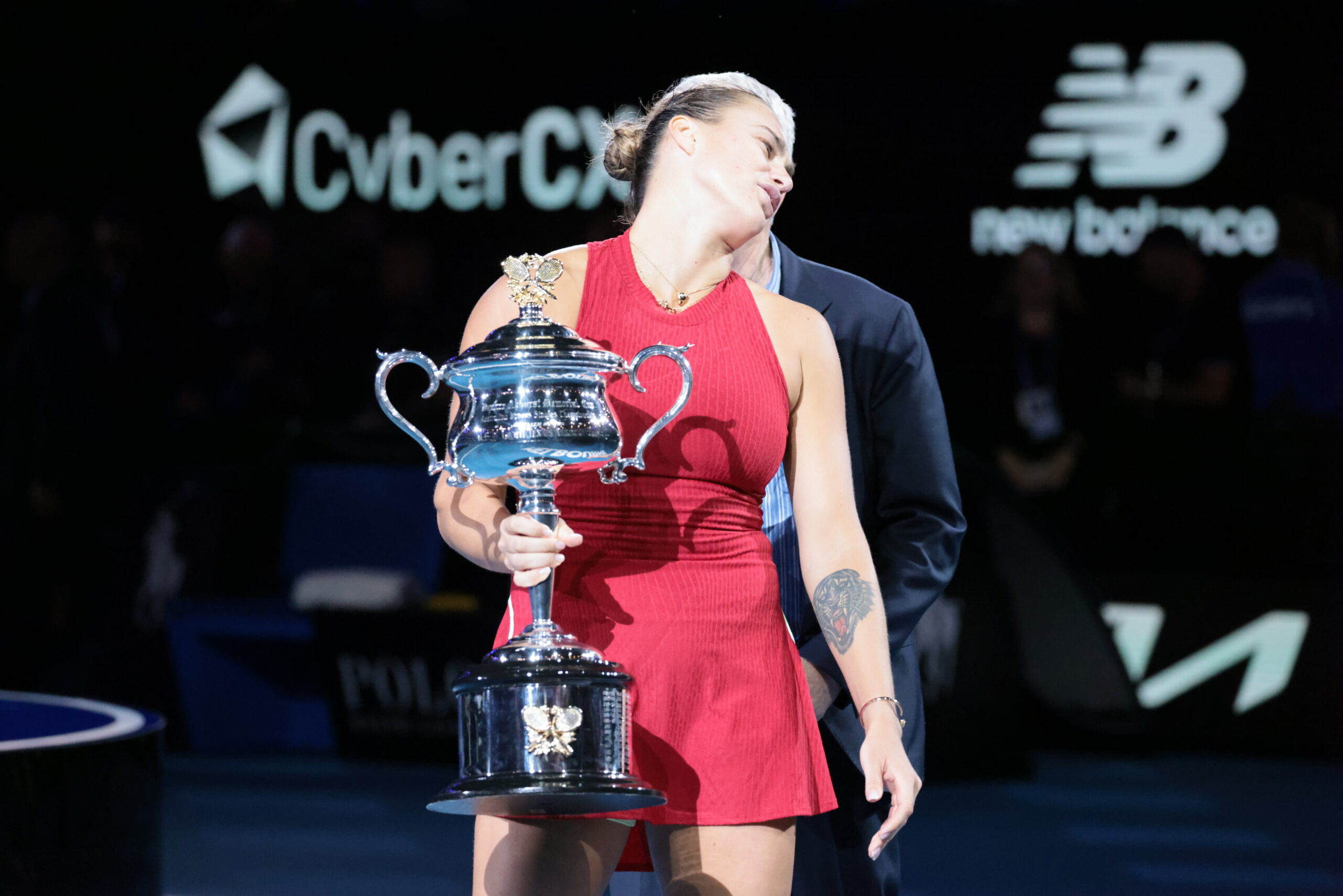 Main photo:- Aryna Sabalenka with 2024 Australian Open Trophy – ISF Ltd
