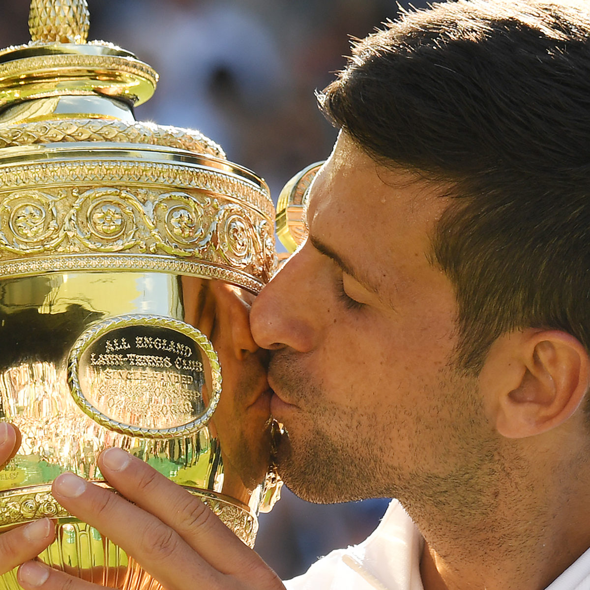 Main photo:- Novak Djokovic kisses the 2022 Wimbledon trophy, his 21st Grand Slam Title – by Roger Parker International Sports Fotos Ltd