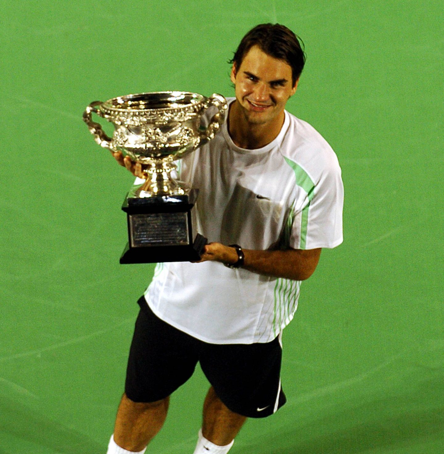 Melbourne Australian Open 29.01.2006 Roger Federer (SUI) with Men’s Singles Trophy Photo Roger Parker International Sports Fotos Ltd