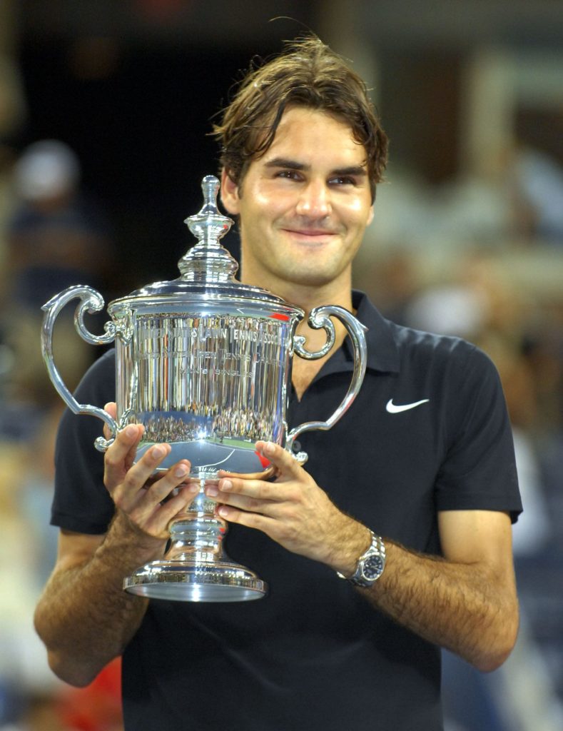 US OPEN TENNIS 2005 NEW YORK 11/09/2005 ROGER FEDERER (SUI) WITH MEN’S SINGLES TROPHY Photo Roger Parker International Sports Fotos Ltd