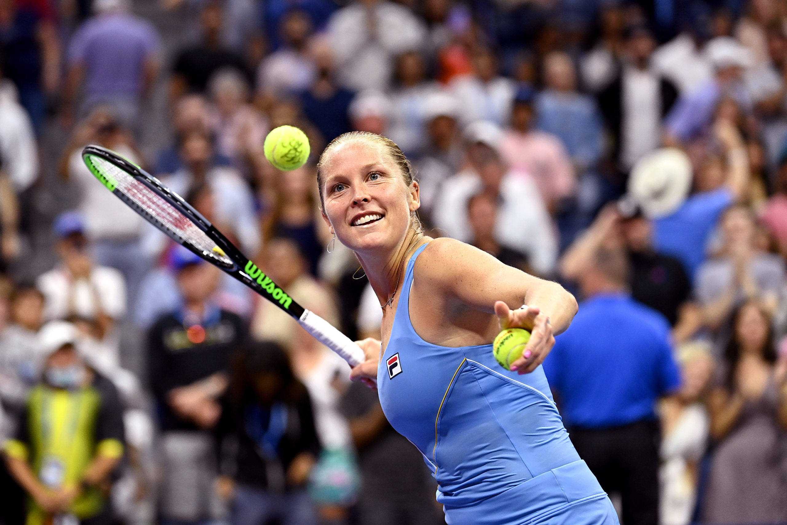 Shelby Rogers reacts to her win during a Women's Singles match at the 2021 US Open, Saturday, Sep. 4, 2021 in Flushing, NY. (Pete Staples/USTA)