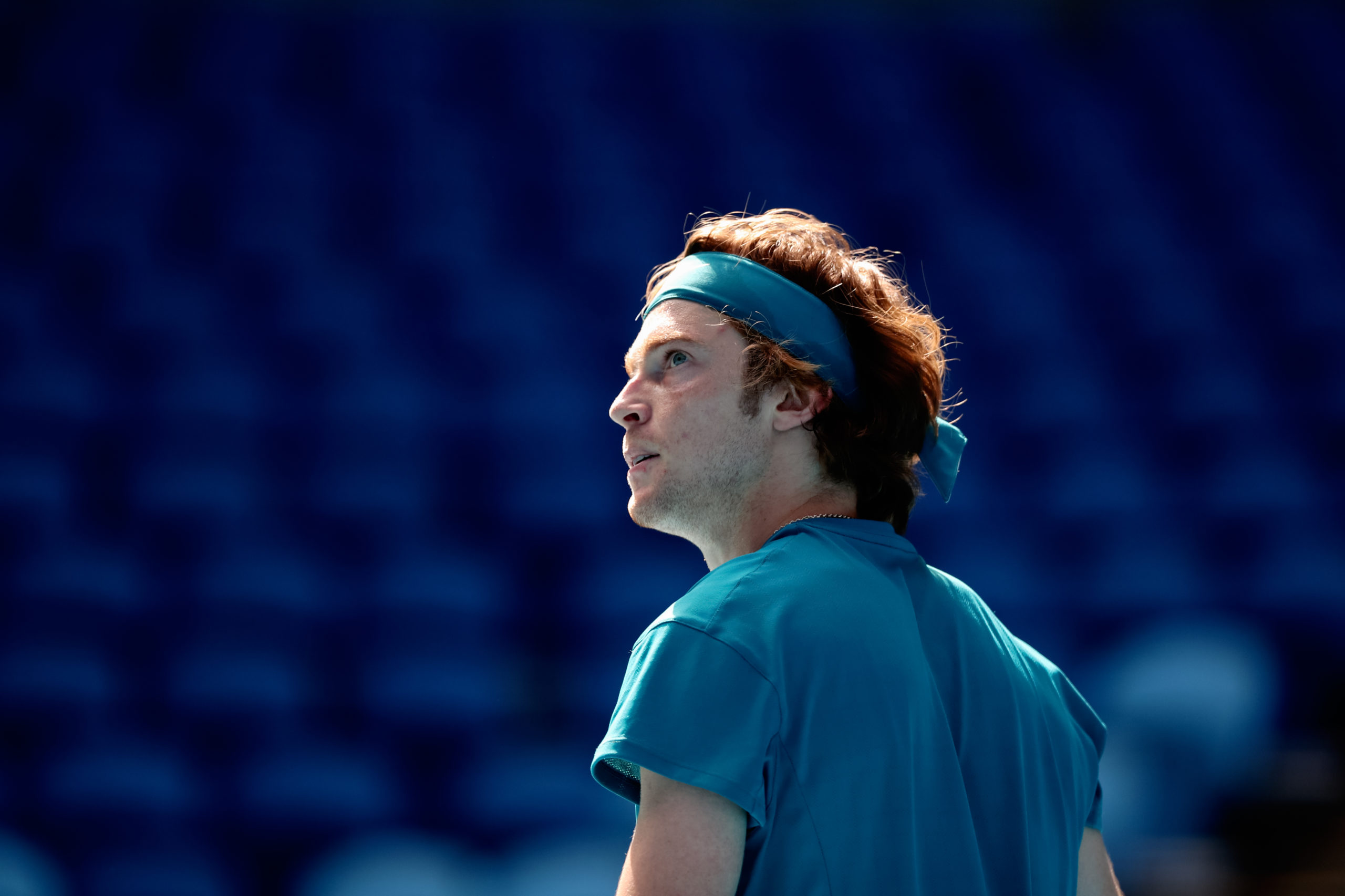 Andrey RUBLEV (RUS) and Feliciano LOPEZ (ESP) on Margaret Court Arena during Day 6 of the Australian Open at Melbourne Park on Saturday, February 13, 2021. MANDATORY PHOTO CREDIT Tennis Australia/ MARK PETERSON