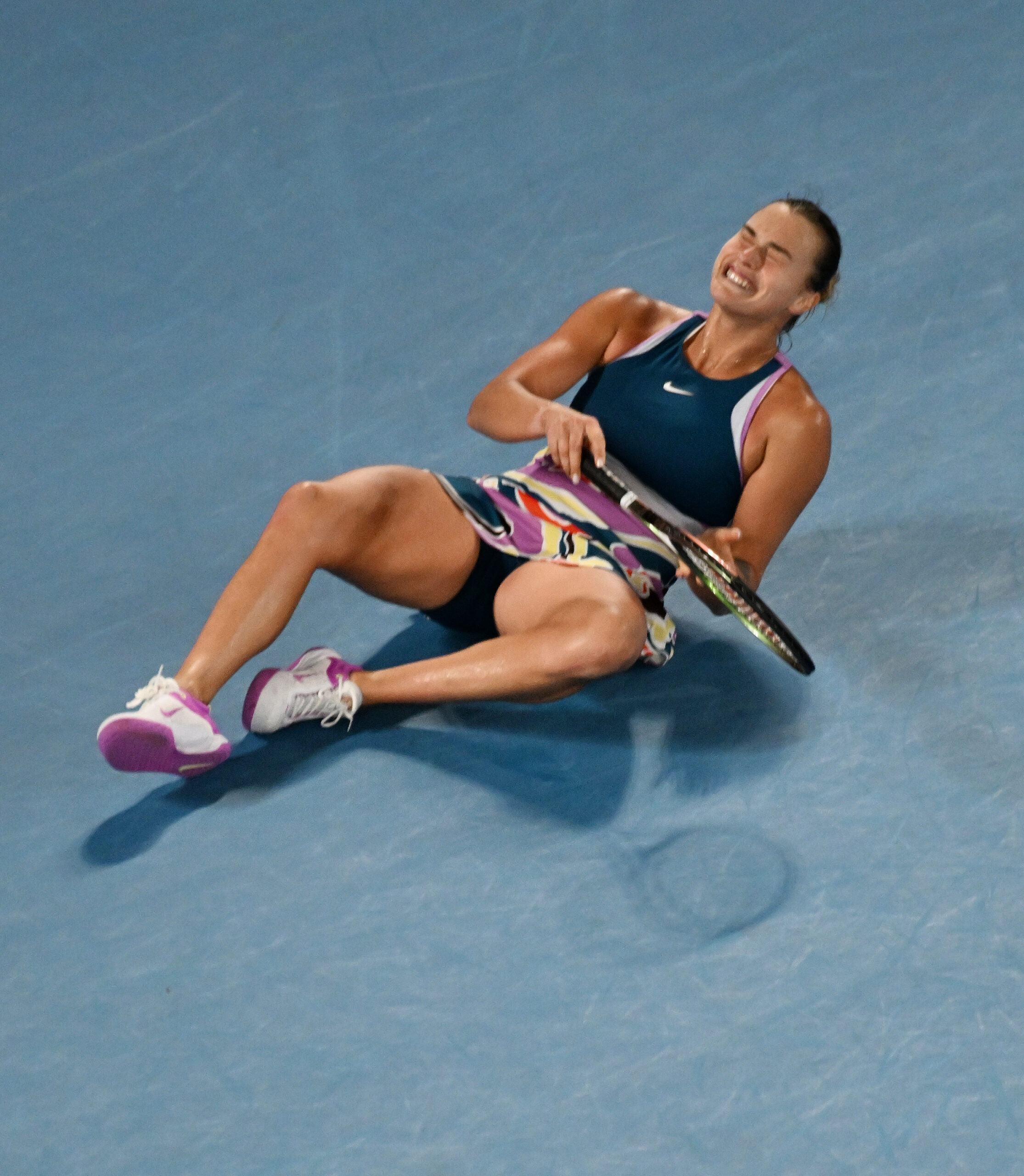 Australian Open 2023 Melbourne Park Day 13 28/01/2023 Aryna Sabalenka (XXX) celebrates after she wins Ladies Singles Final Photo Roger Parker International Sports Fotos Ltd
