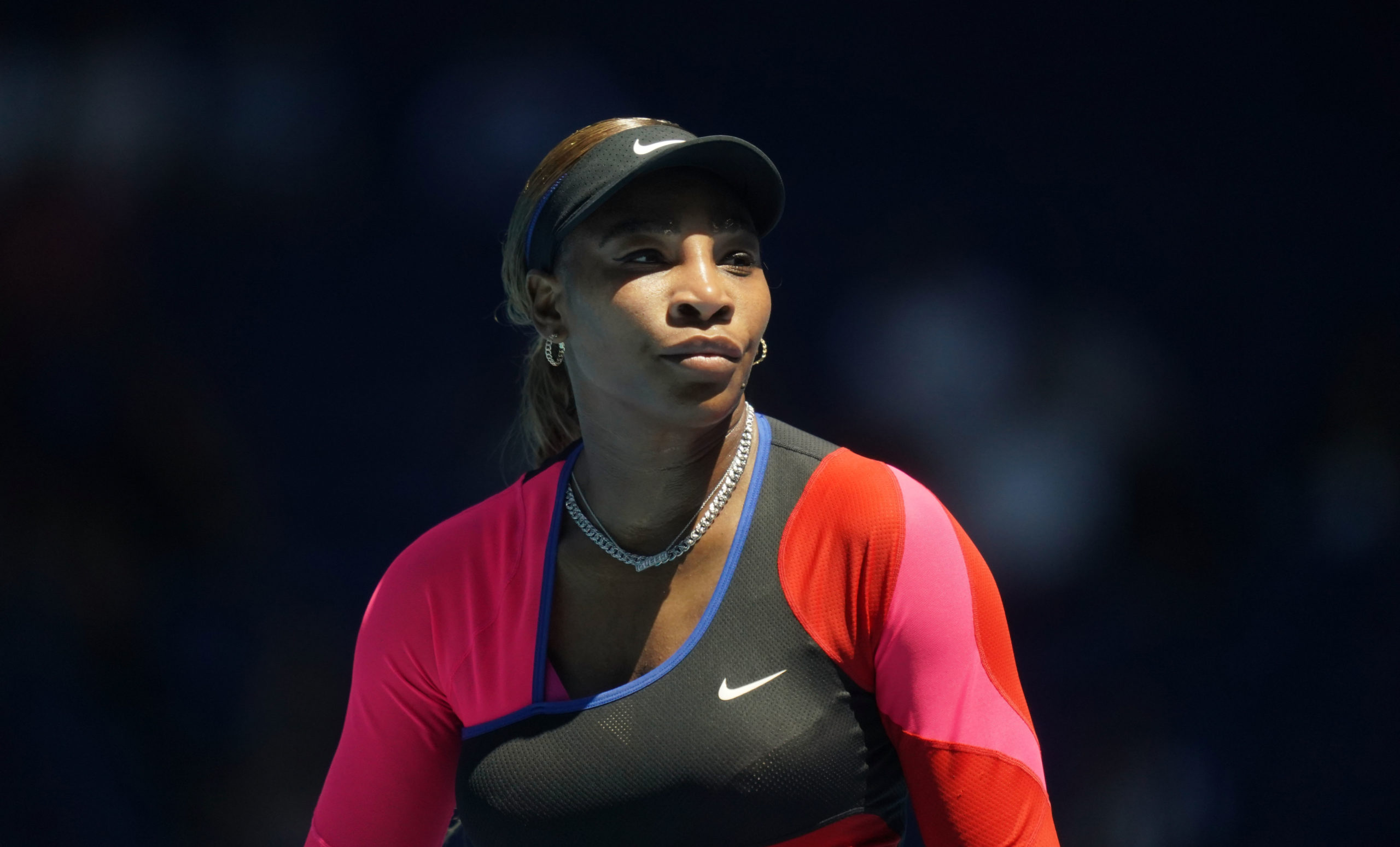 Serena WILLIAMS (USA) looks on as she plays Nina STOJANOVIC (SRB) on Rod Laver Arena during Day 3 of the Australian Open at Melbourne Park on Wednesday, February 10, 2021. MANDATORY PHOTO CREDIT Tennis Australia/ SCOTT BARBOUR