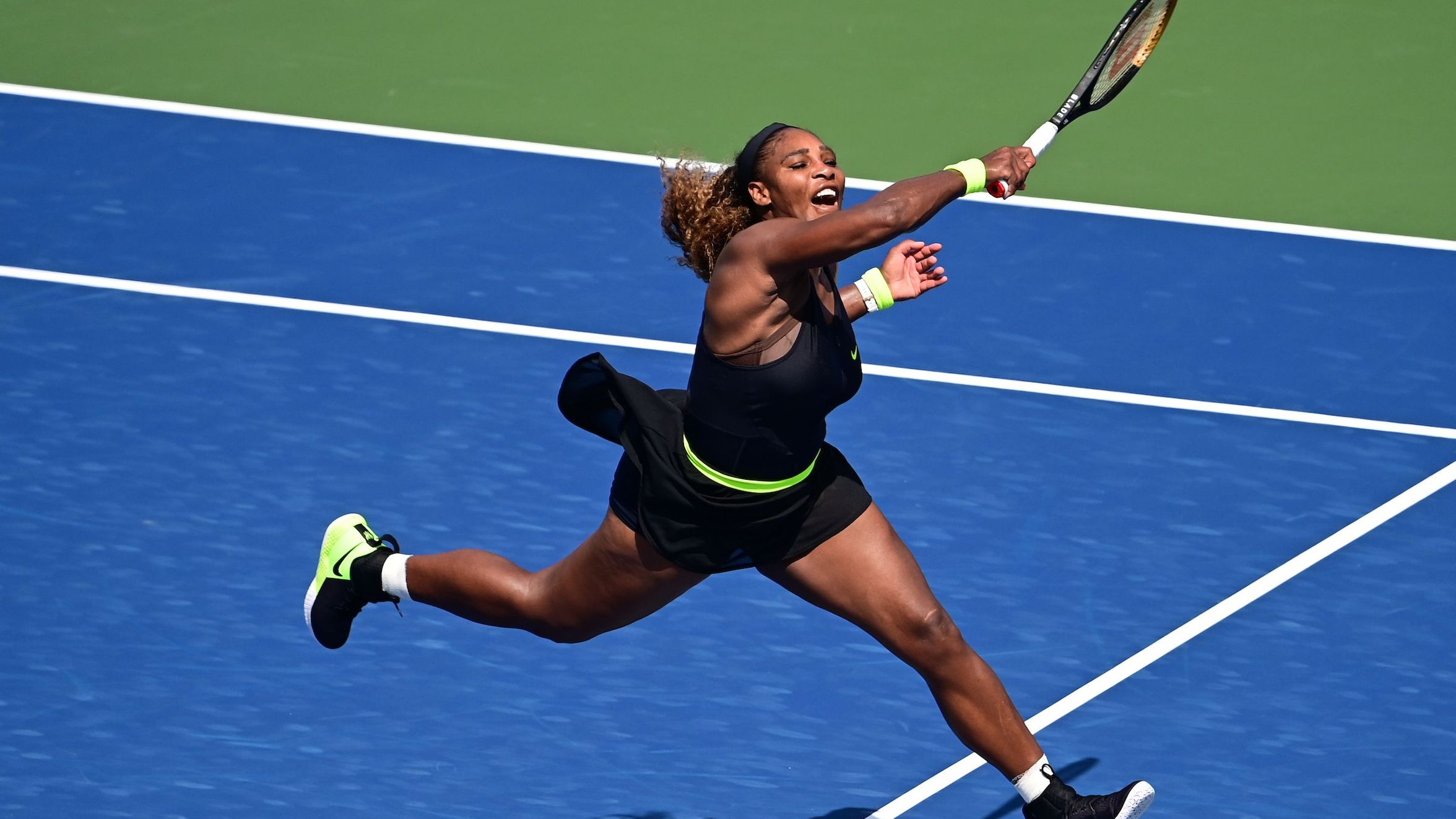 Williams argued with the umpire, saying: “I mean, I’m getting my own towels. That’s not fair. You should tell me on the sidelines next time if I need to play faster.”