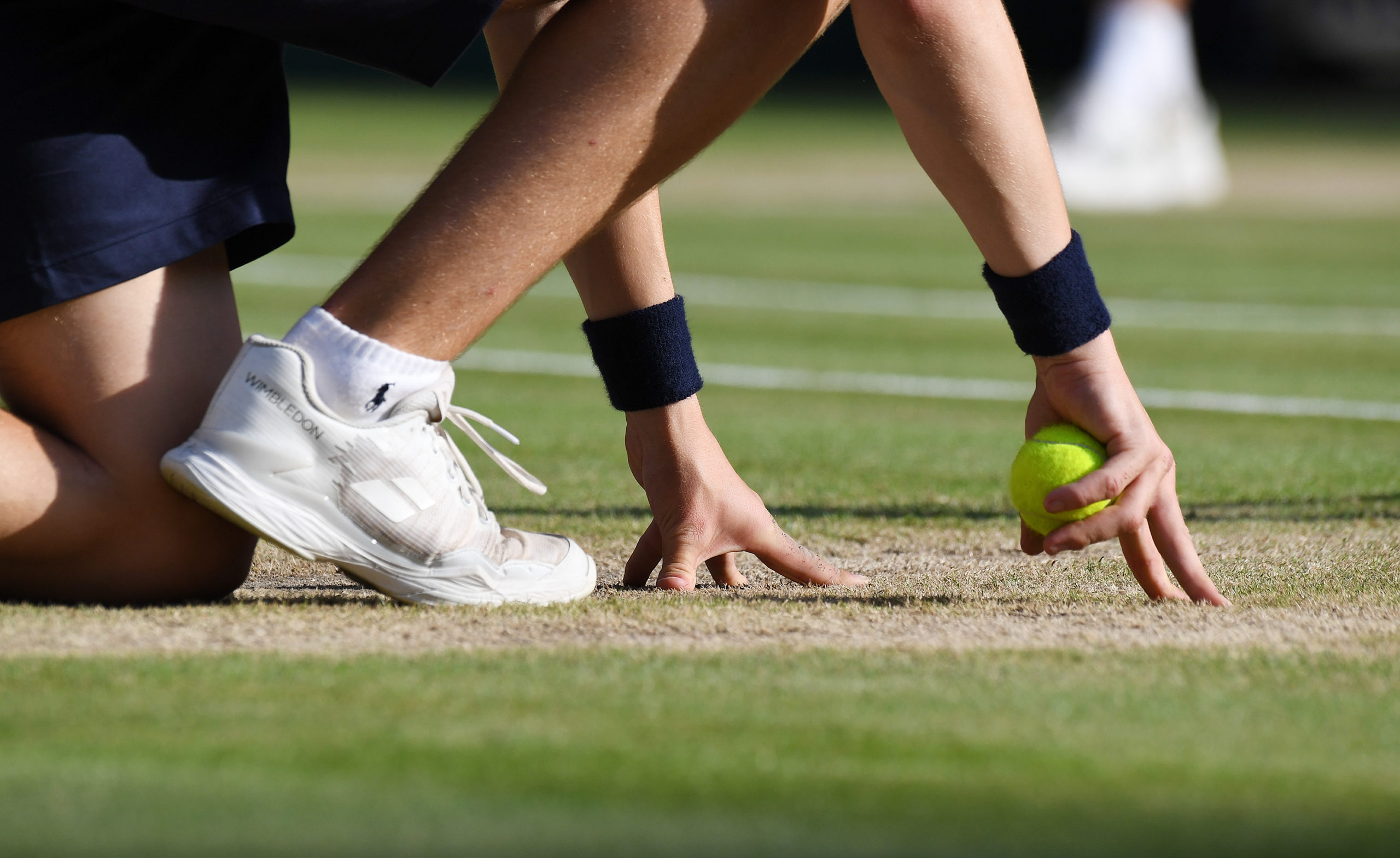 London England 14 July 2019 The Championships Wimbledon 2019 14072019 Ambience,Ambiance. Ballboy ready to pounce Photo Roger Parker International Sports Fotos Ltd