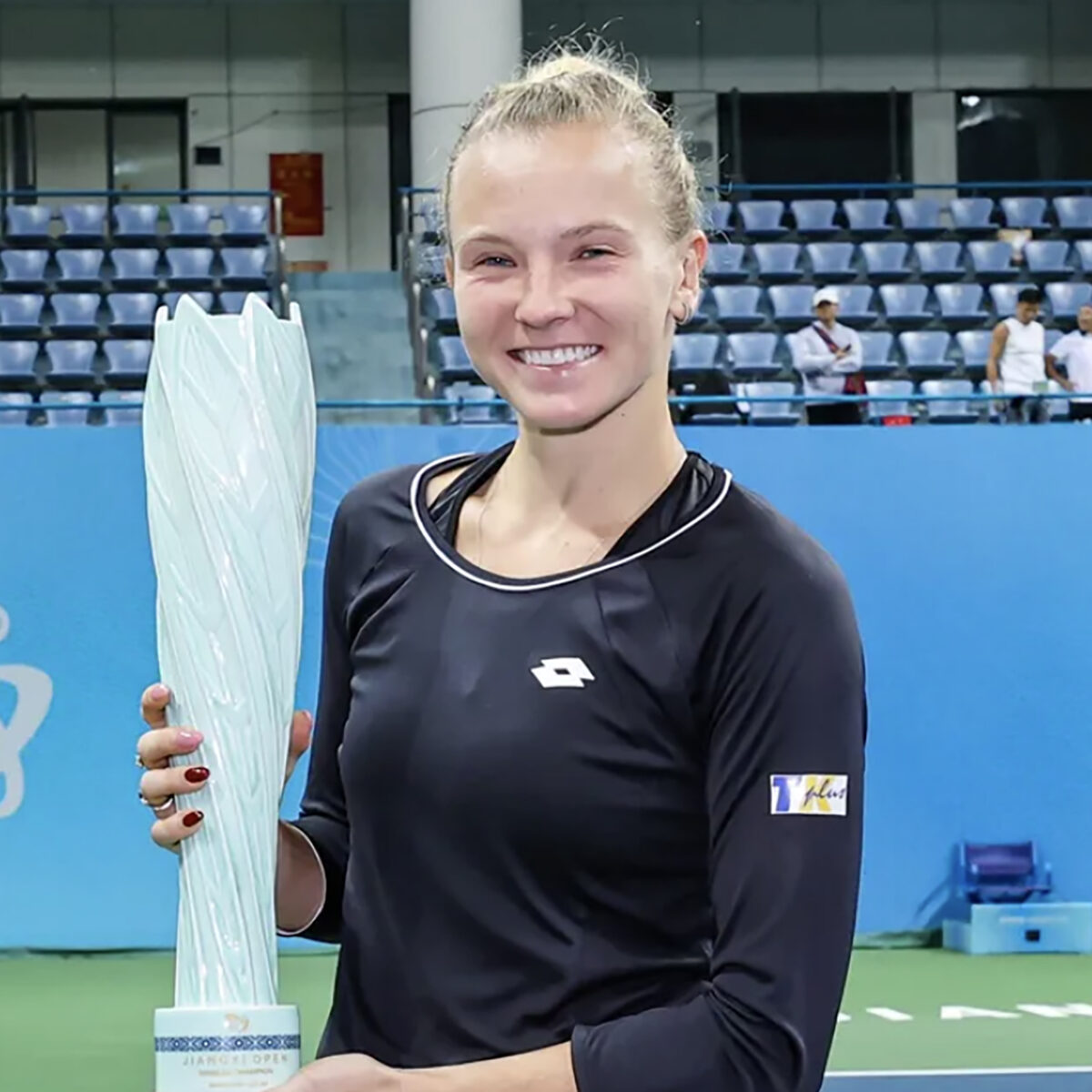 The 60th-ranked unseeded winner, losing finalist last week in Hong Kong, fought back from break down in the final two sets to earn a second trophy this season after Bad Homburg in June.