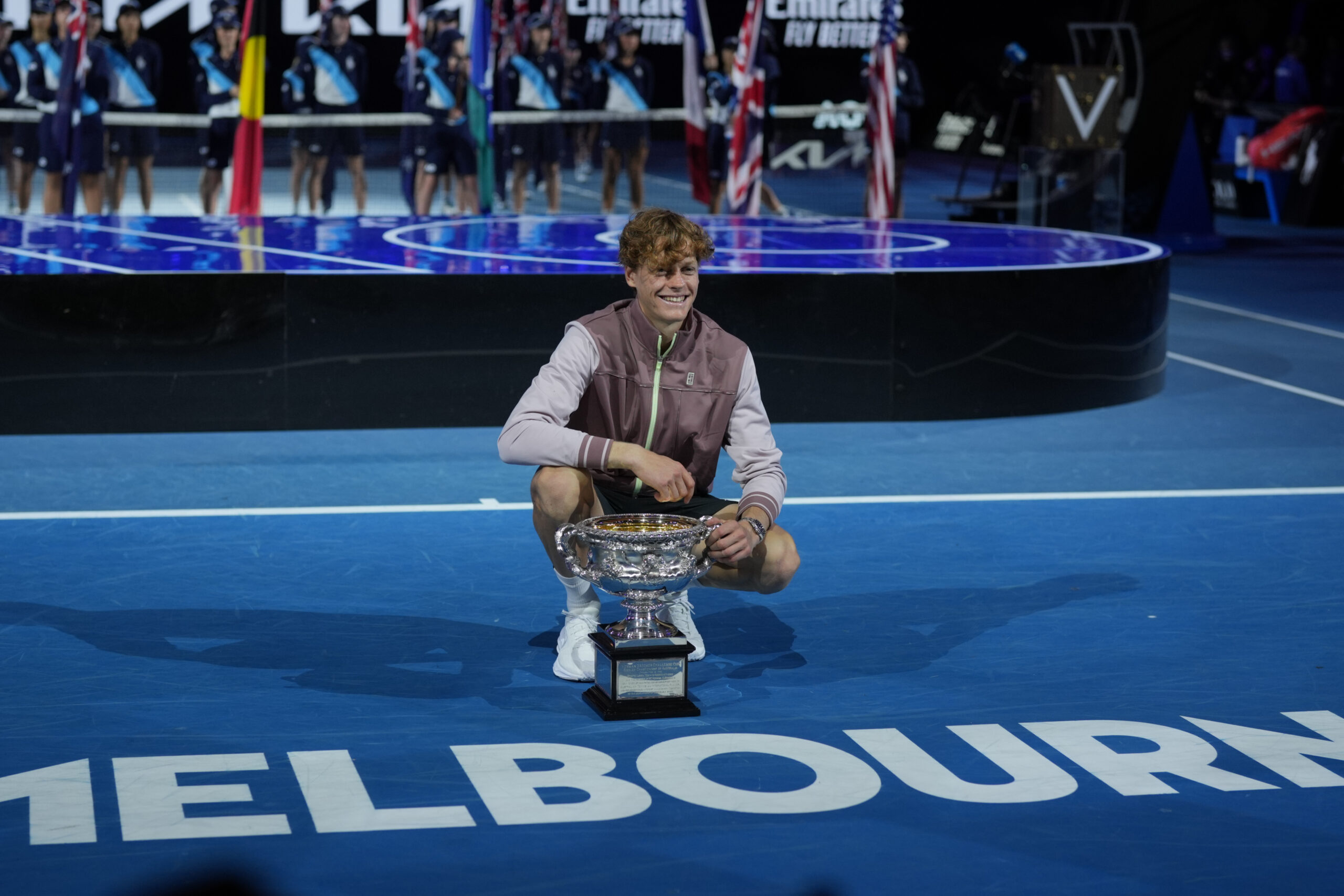 Jannik Sinner survived an early breakaway by Daniil Medvedev before reeling in the world No. 3 to earn an historic 3-6, 3-6, 6-4, 6-4, 6-3 victory in Sunday’s Australian Open final.