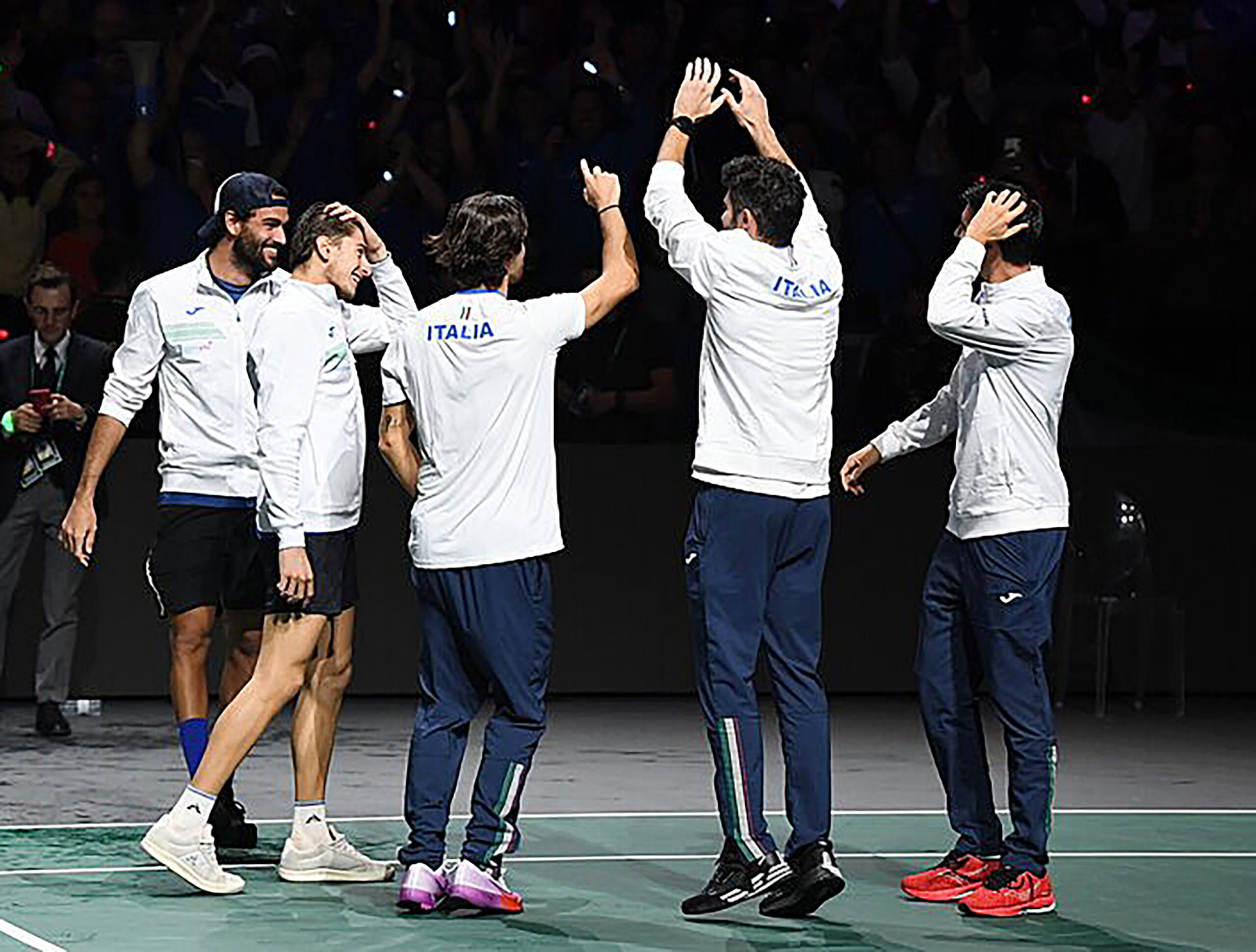 Main photo:- Jannik Sinner and Italy celebrate Davis Cup win.