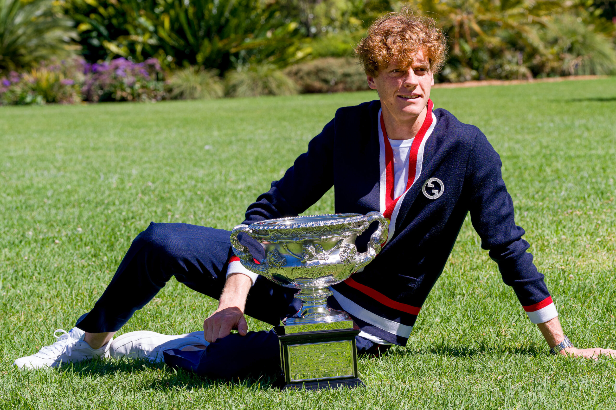 Main photo:- Jannik Sinner poses with the Norman Brookes Challenge cup in Melbourne