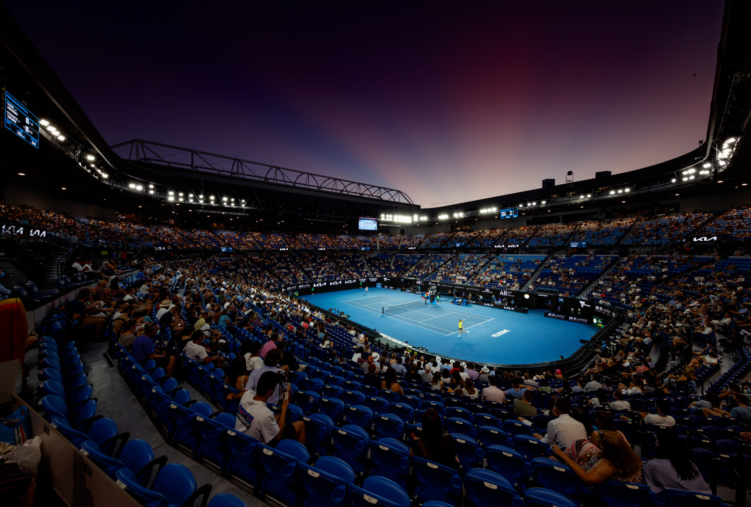 Stefanos TSITSIPAS (GRE) plays Daniil MEDVEDEV (RUS) on Rod Laver Arena during Day 12 of the Australian Open at Melbourne Park on Friday, February 19, 2021. MANDATORY PHOTO CREDIT Tennis Australia/ MARK PETERSON