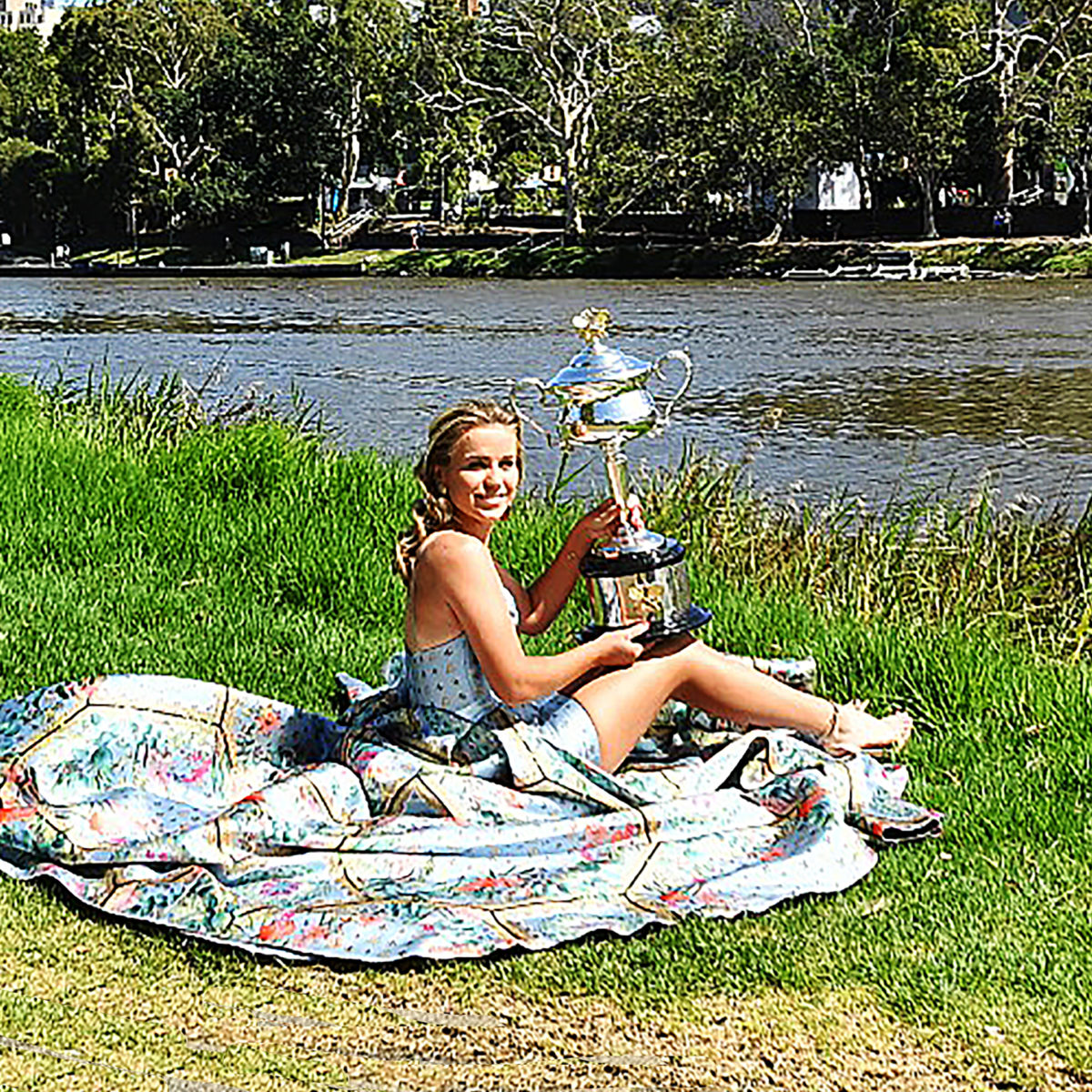 Main photo:- Sofia Kenin with her first trophy the Daphne Akhurst Cup by Roger Parker International Sports Fotos Ltd