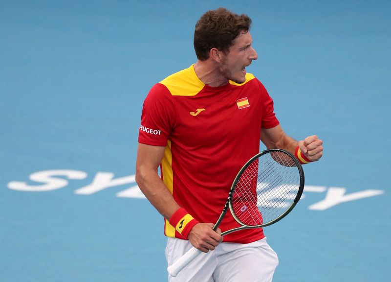 Tennis - ATP Cup - Sydney Olympic Park, Sydney, Australia - January 1, 2022 Spain's Pablo Carreno celebrates winning his group stage match against Chile's Alejandro Tabilo REUTERS/Asanka Brendon Ratnayake