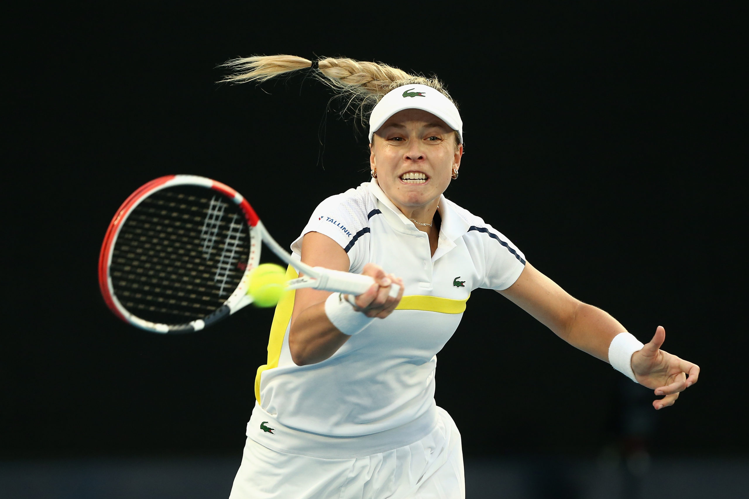 Anett KONTAVEIT (EST) plays Shelby ROGERS (USA) on Rod Laver Arena during Day 6 of the Australian Open at Melbourne Park on Saturday, February 13, 2021. MANDATORY PHOTO CREDIT Tennis Australia/ ROB PREZIOSO