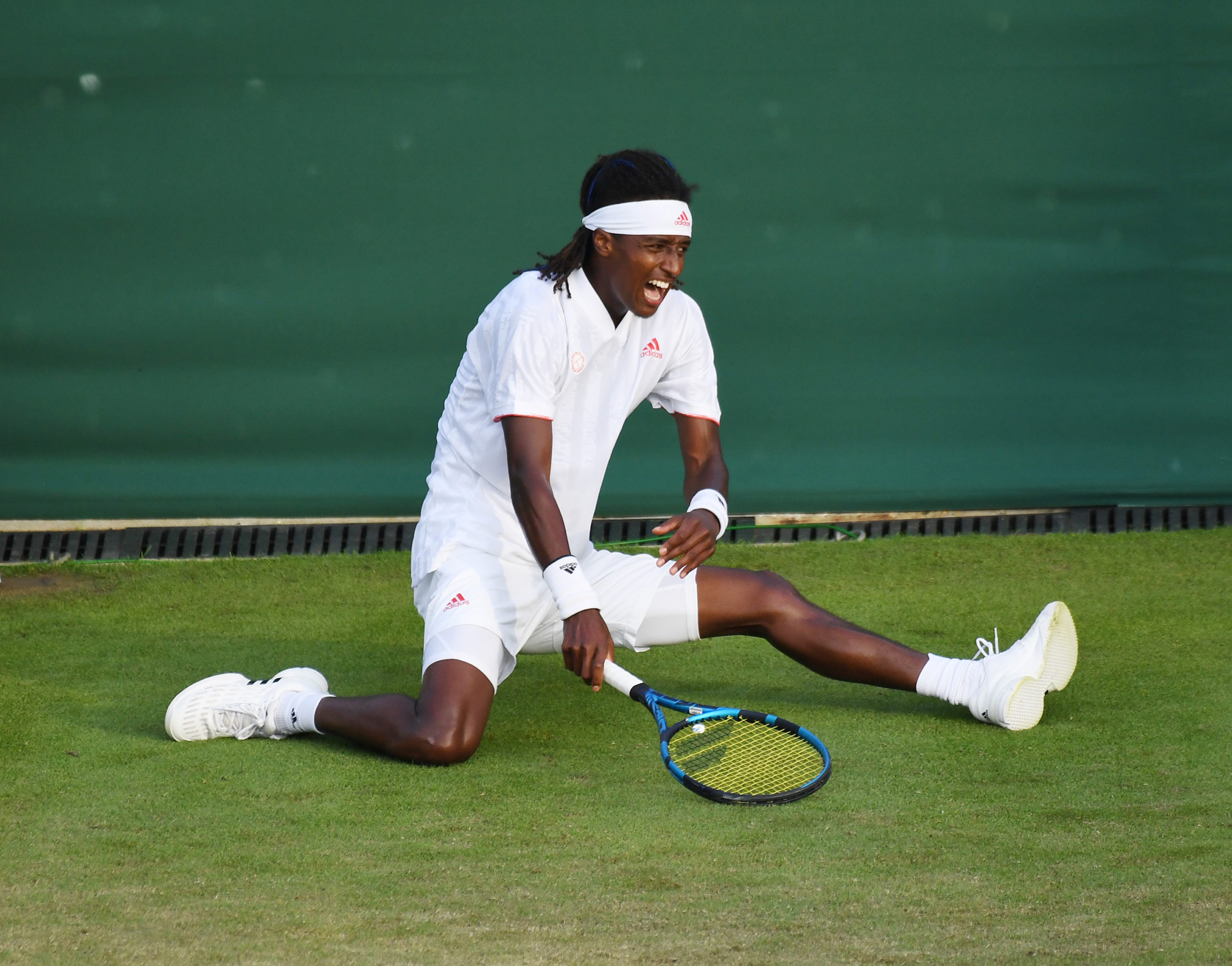 London Wimbledon Championships Day 4 01/07/2021 Mikael Ymer (SWE) becomes the latest victim of the slippy Wimbledon grass in his match against Felix Auger-Aliassime (CAN) After treatment he recovered and completed his match Roger Parker International Sports Fotos Ltd