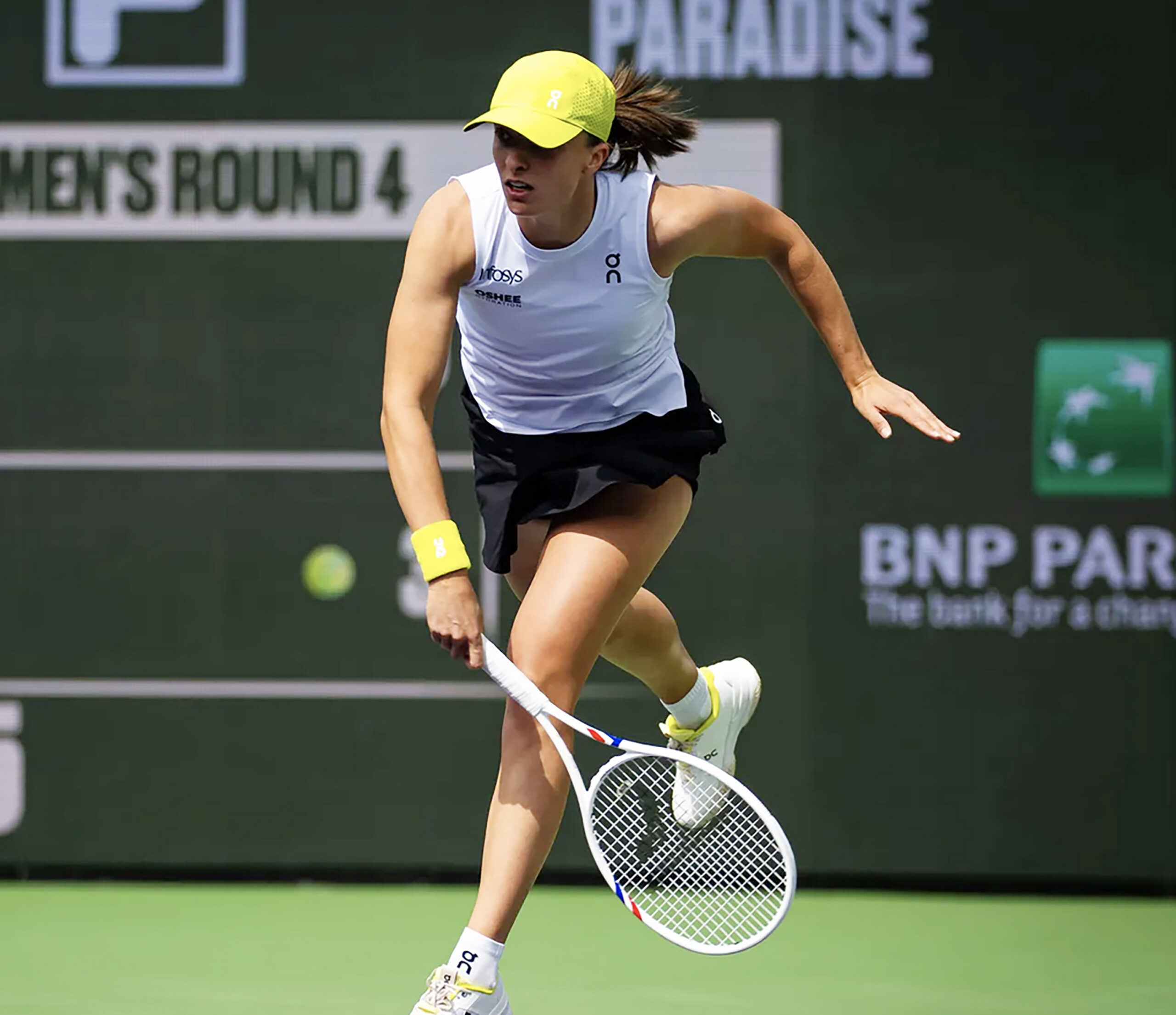 Iga Swiatek switched to warp speed after rain delayed her fourth-round match by an hour, with the two-time Indian Wells Masters champion pounding out a crushing, quick-fire victory.