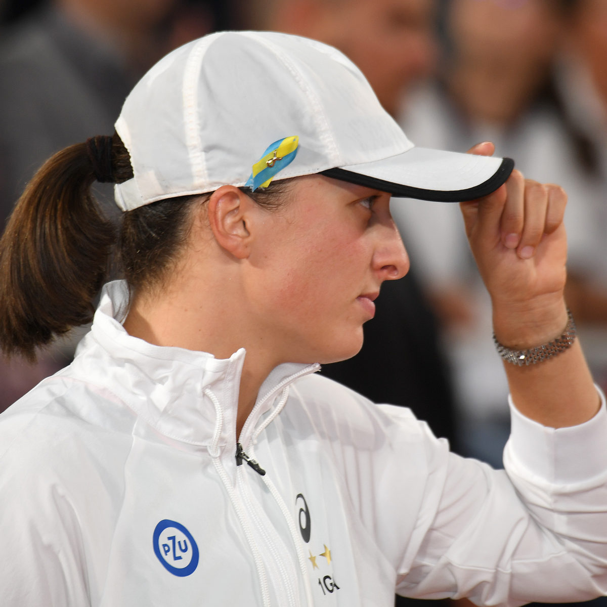 Main photo:- Iga Swiatek plays with a Ukraine badge on her cap by Roger Parker International Sports Fotos Ltd