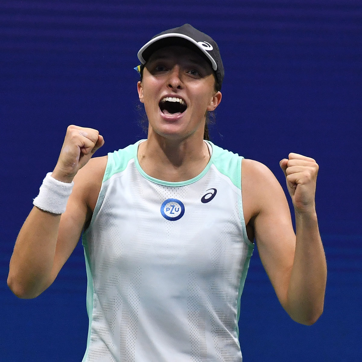 Iga Swiatek celebrates as she wins her US Open semifinal. Photo: Roger Parker International Sports Fotos Ltd