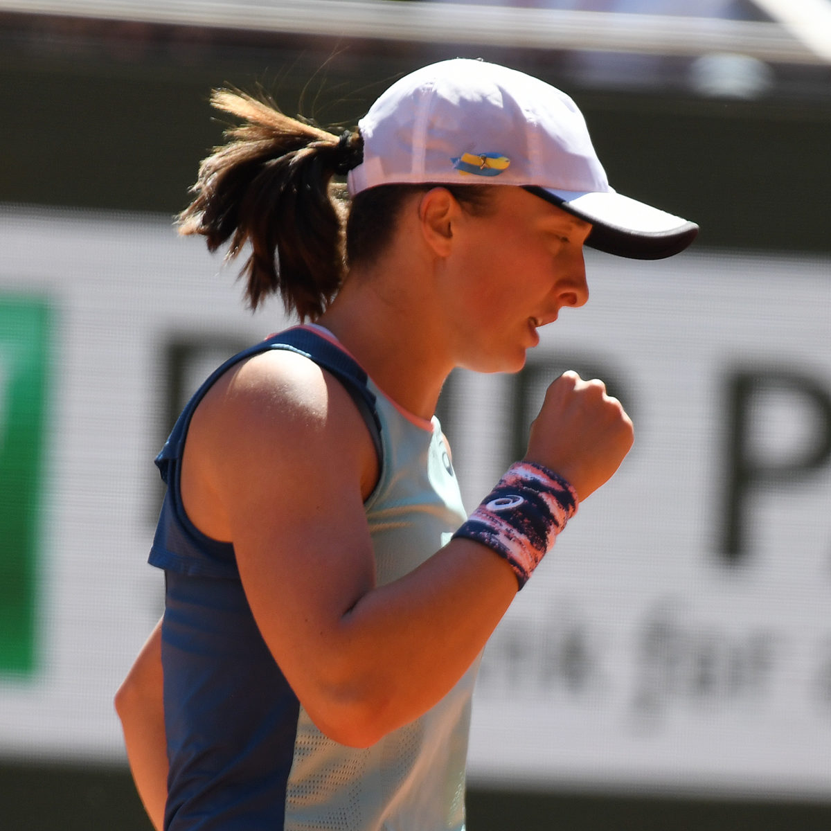 Main photo:-Iga Swiatek fist pumps as she wins 34th match on the trot – by Roger Parker International Sports Fotos Ltd