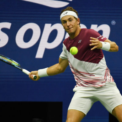 Casper Ruud had to bring himself back down to earth on a rainy Tuesday as he worked to close out a 6-1, 6-4, 7-6(4) quarter-final