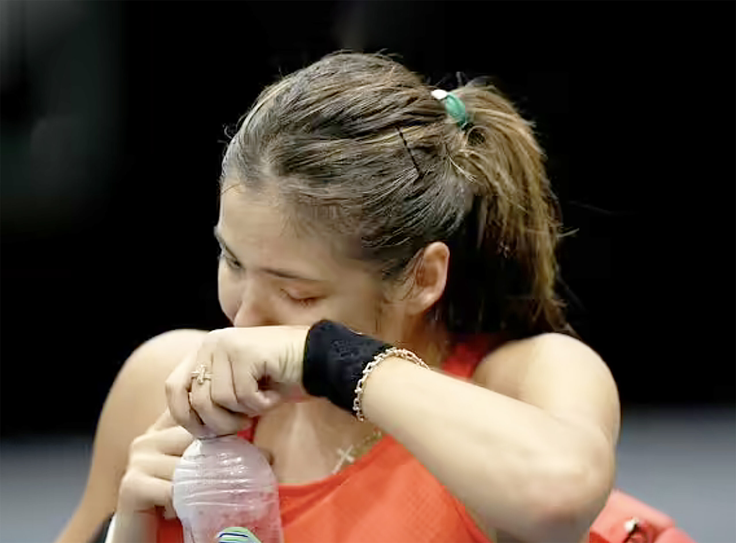 Raducanu couldn’t continue and blamed slippery court conditions for her injury, and also criticized the long wait to play her match.