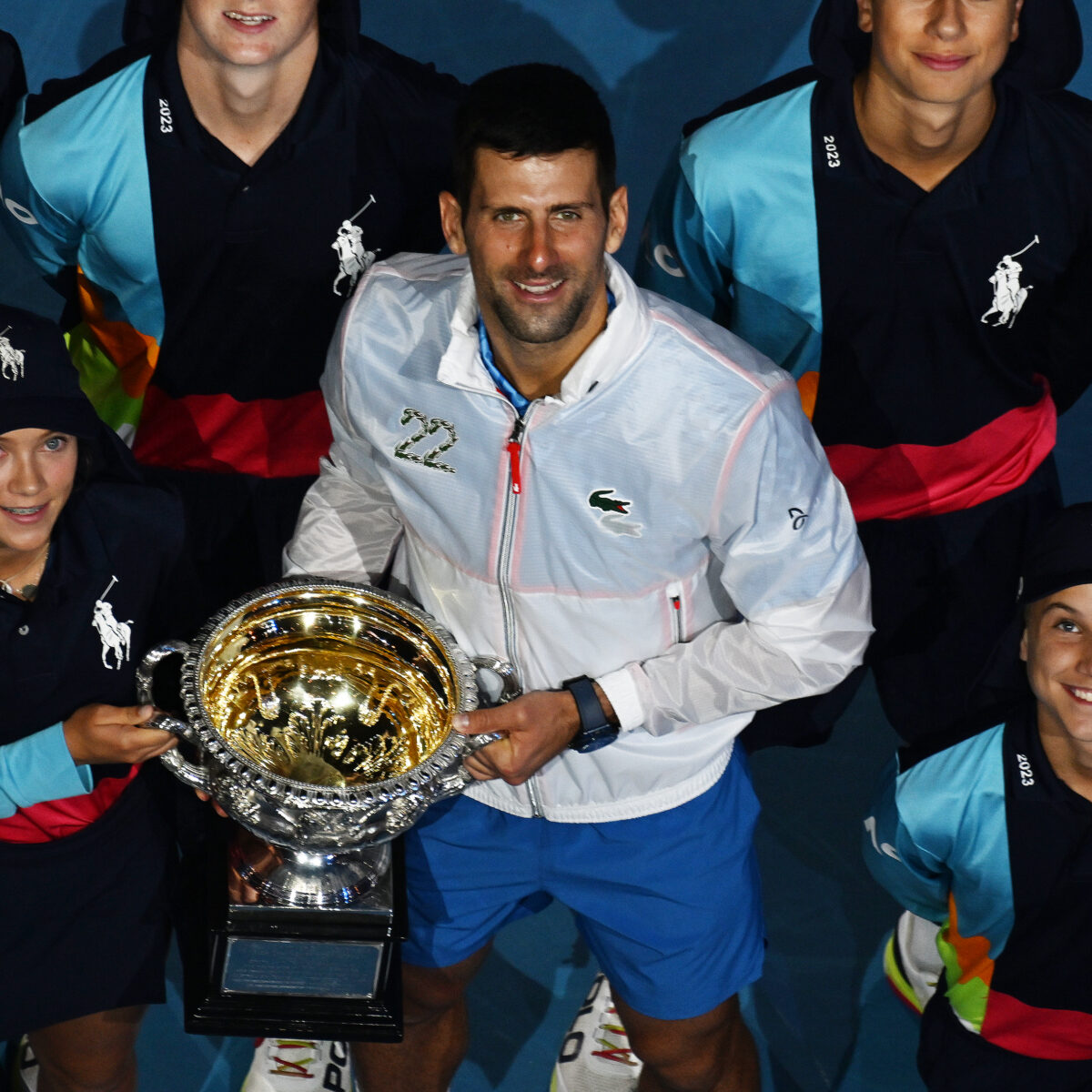 Main photo:- Novak Djokovic (SRB) celebrates with ballkids as he wins Australian Open 2023 Men’s singles final