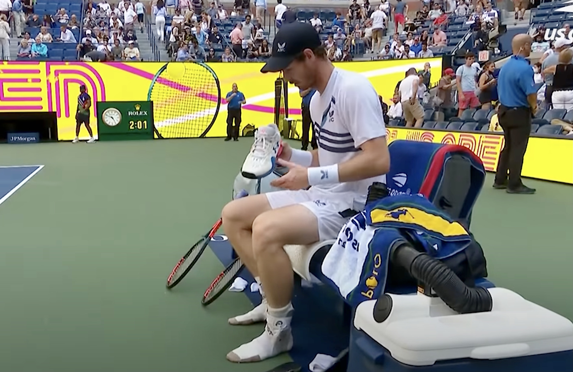 Former world No. 1 Andy Murray took a novel approach to drying his shoes in a break of play against Stefanos Tsitsipas at the US Open on Monday.