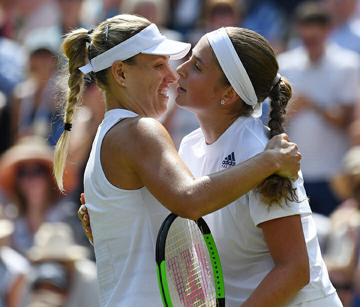 Angelique Kerber shares a warm embrace with her defeated semi-final opponent, 21-year-old Latvian prodigy Jelena Ostapenko. In May last year she arrived in Paris as an unknown teenager, and left as a Grand Slam champion. She lists her hobbies as dancing, shopping and reading.
