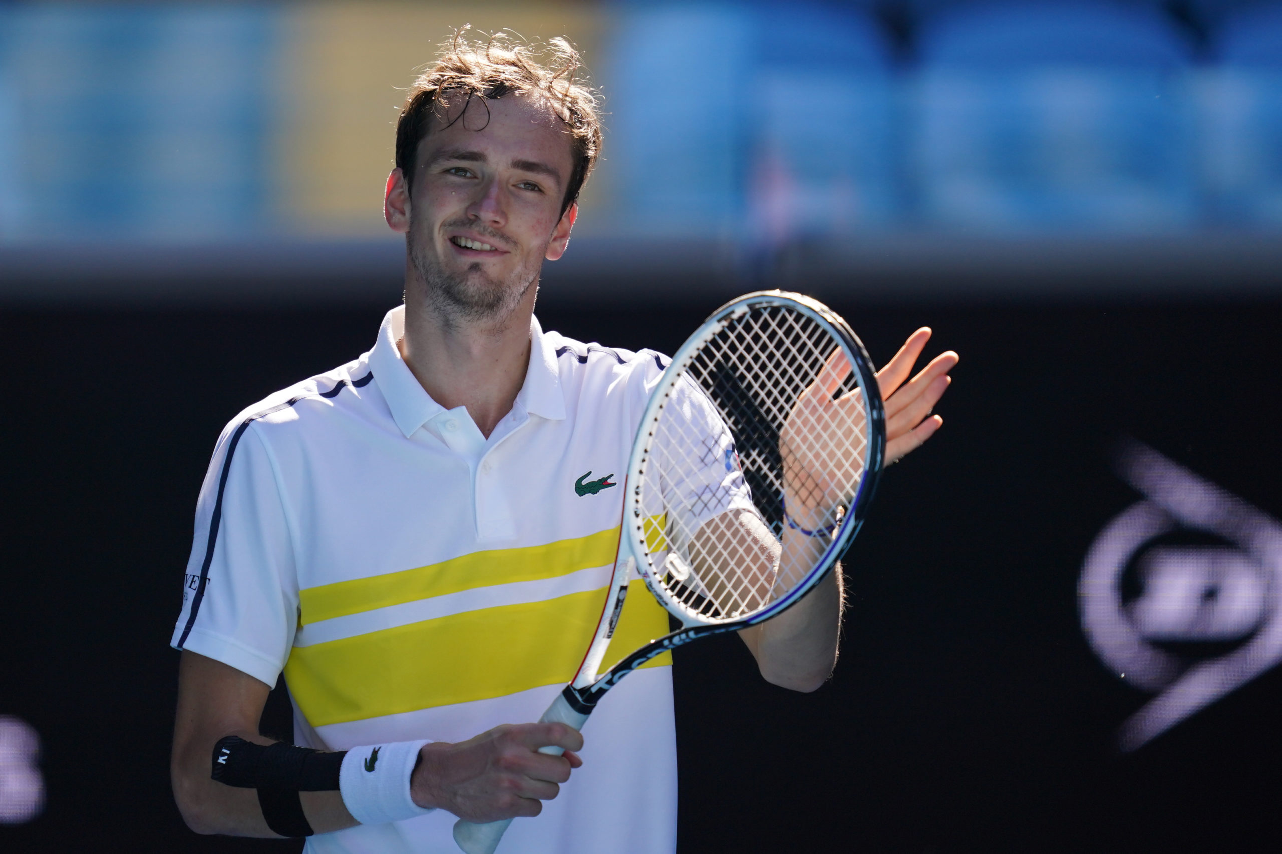 Daniil MEDVEDEV (RUS) reacts on winning his match against Vasek POSPISIL (CAN) on Margaret Court Arena during Day 2 of the Australian Open at Melbourne Park on Tuesday, February 9, 2021. MANDATORY PHOTO CREDIT Tennis Australia/ NATASHA MORELLO