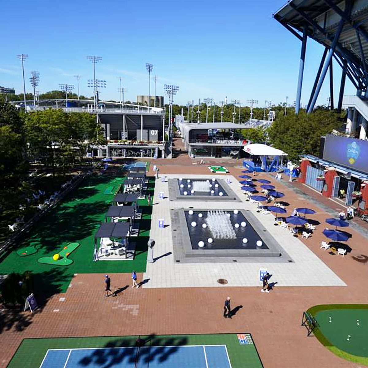 Main photo:-South Plaza, Billie Jean King National Tennis centre. Photo USTA