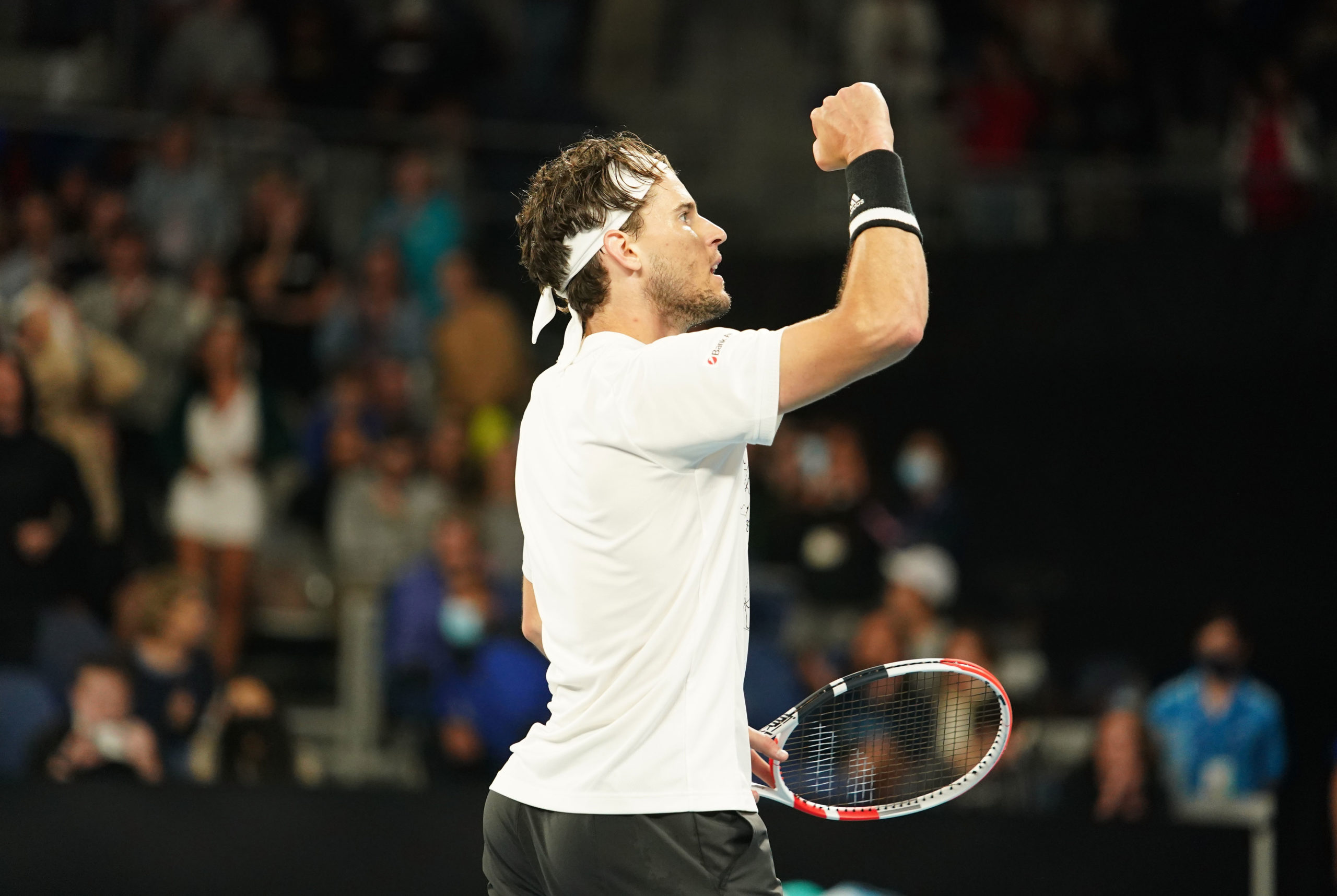 Dominic THIEM (AUT) celebrates winning match point to defeat Nick KYRGIOS (AUS) on John Cain Arena during Day 5 of the Australian Open at Melbourne Park on Friday, February 12, 2021. MANDATORY PHOTO CREDIT Tennis Australia/ SCOTT BARBOUR