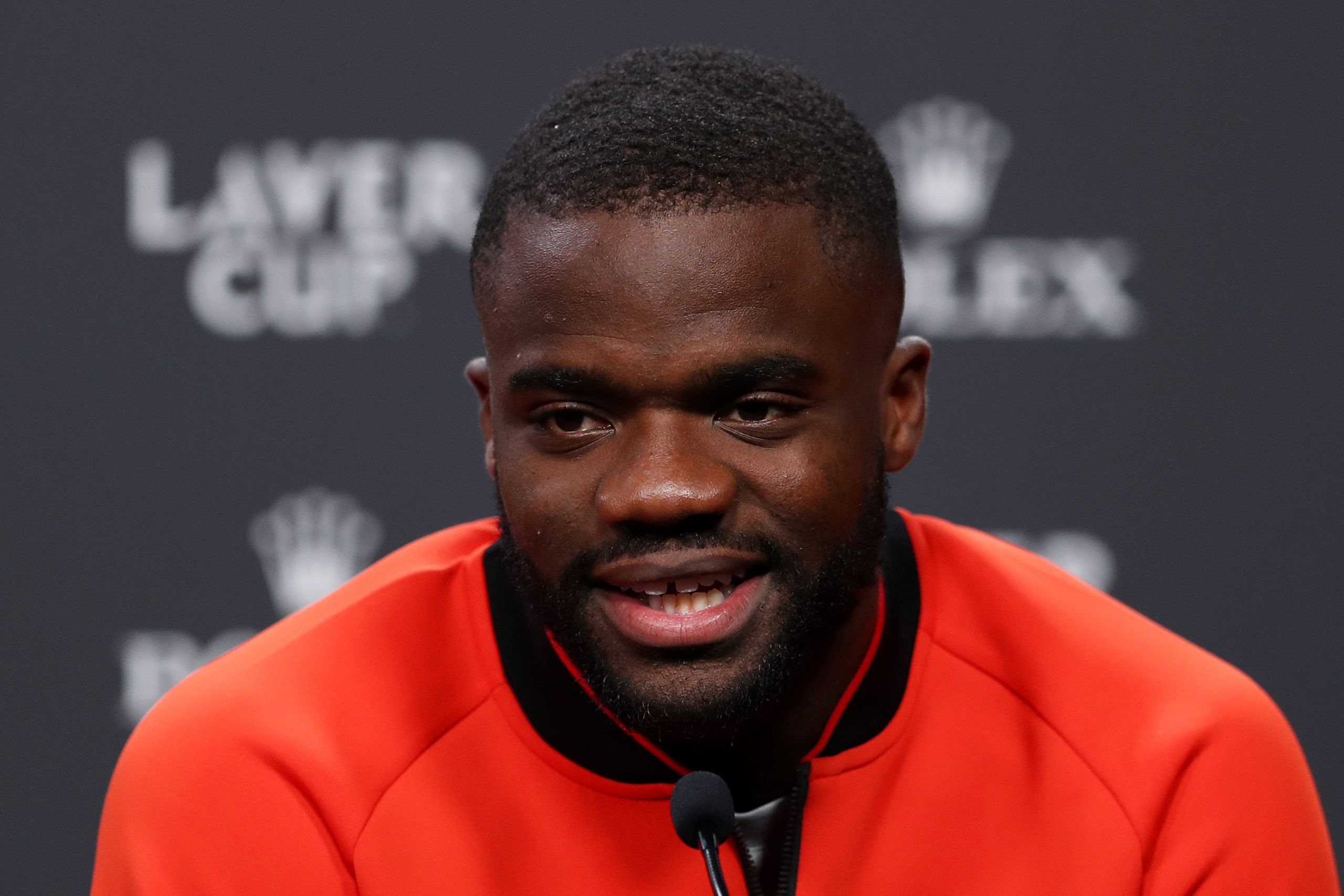 LONDON, ENGLAND - SEPTEMBER 22: Frances Tiafoe of Team World speaks to the media during a Team World press conference ahead of the Laver Cup at The O2 Arena on September 22, 2022 in London, England. (Photo by Lewis Storey/Getty Images for Laver Cup)