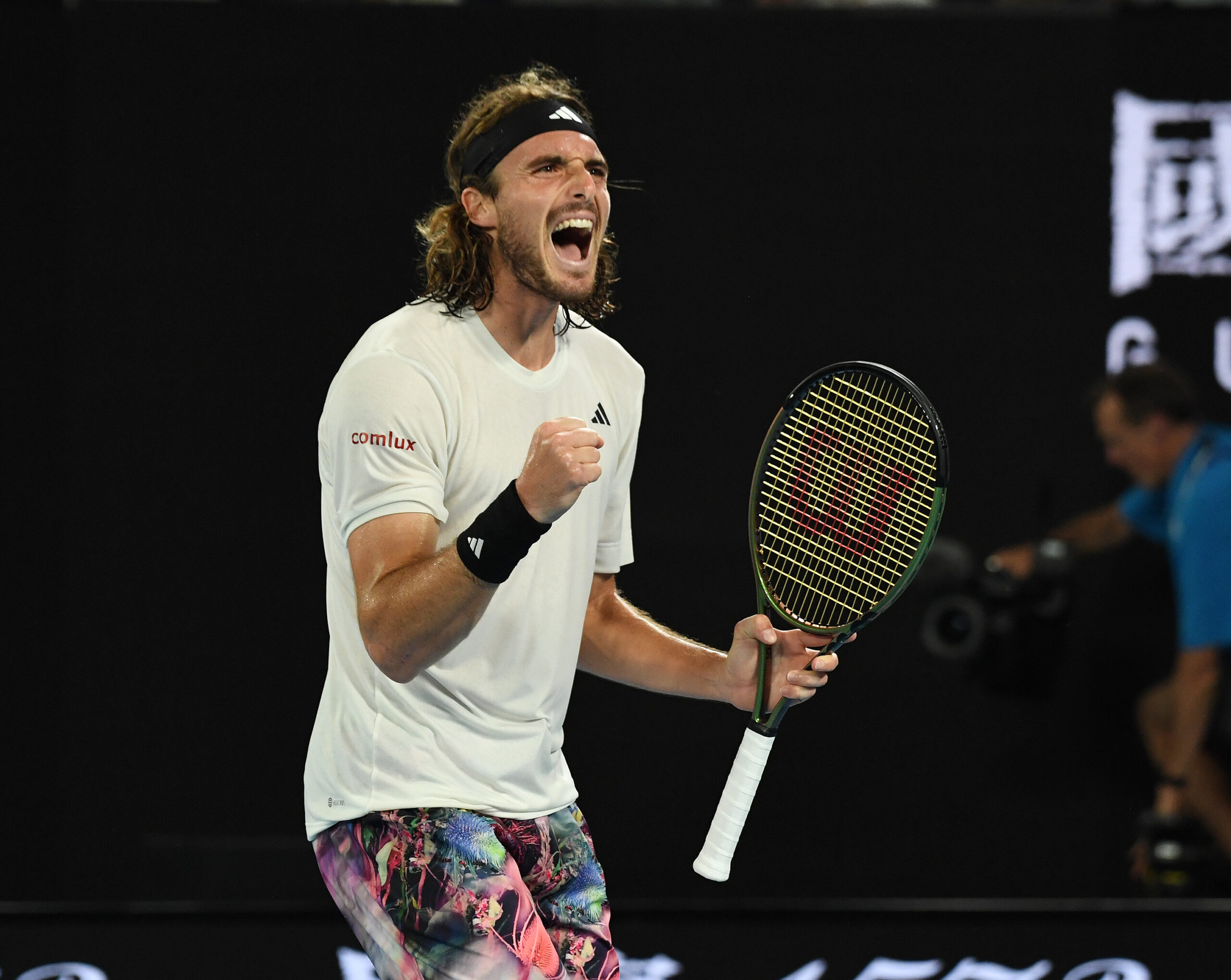 Australian Open 2023 Melbourne Park Day 9 24/01/2023 Stefanos Tsitsipas (GRE) wins quarter final match Photo Roger Parker International Sports Fotos Ltd