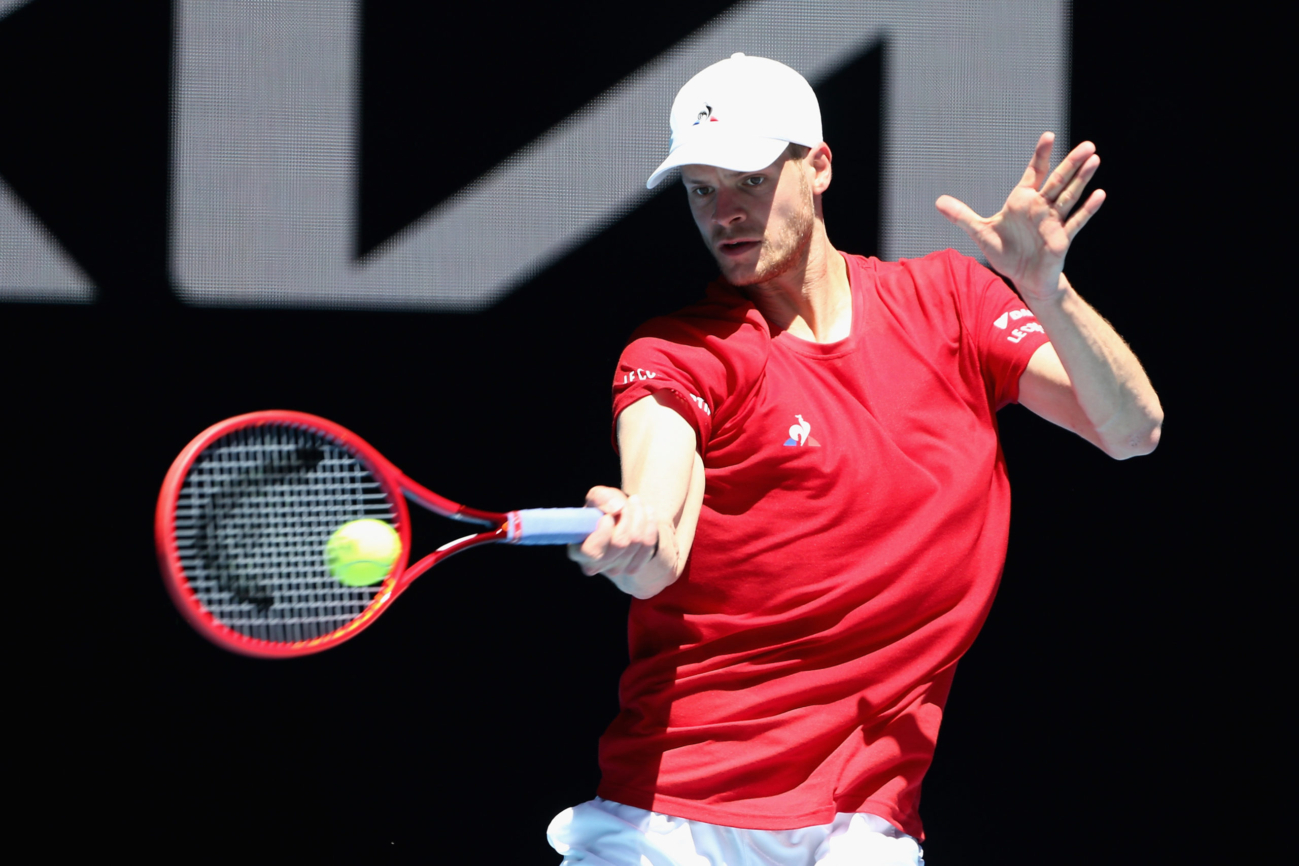 Yannick HANFMANN (GER) plays Andrey RUBLEV (RUS) on John Cain Arena during Day 2 of the Australian Open at Melbourne Park on Tuesday, February 9, 2021. MANDATORY PHOTO CREDIT Tennis Australia/ ROB PREZIOSO