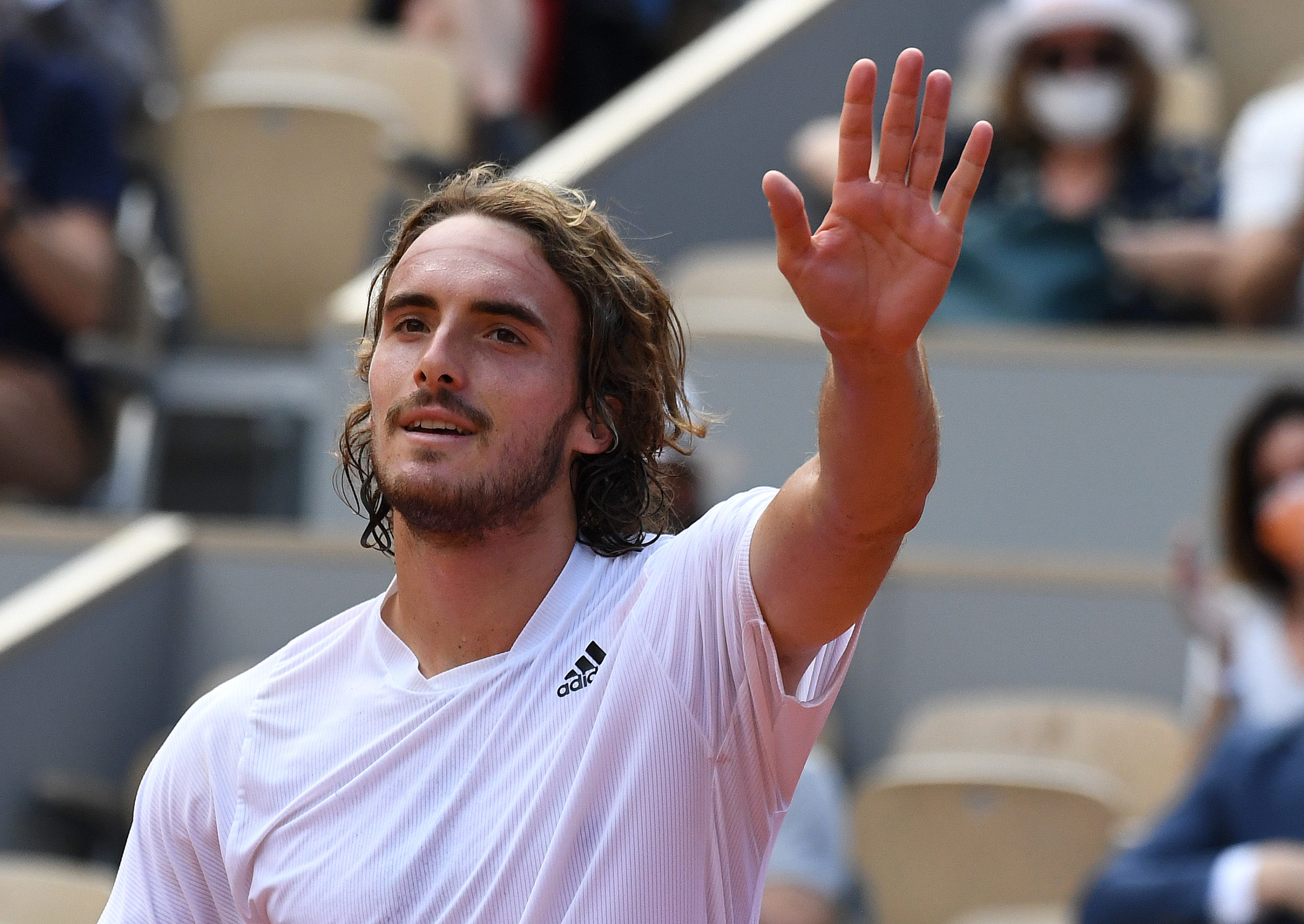 Paris, Roland Garros, French Open Day 8 06/06/2021 Stefanos Tsitsipas (GRE) beats Pablo Carreno Busta (ESP) in fourth round match Roger Parker International Sports Fotos Ltd