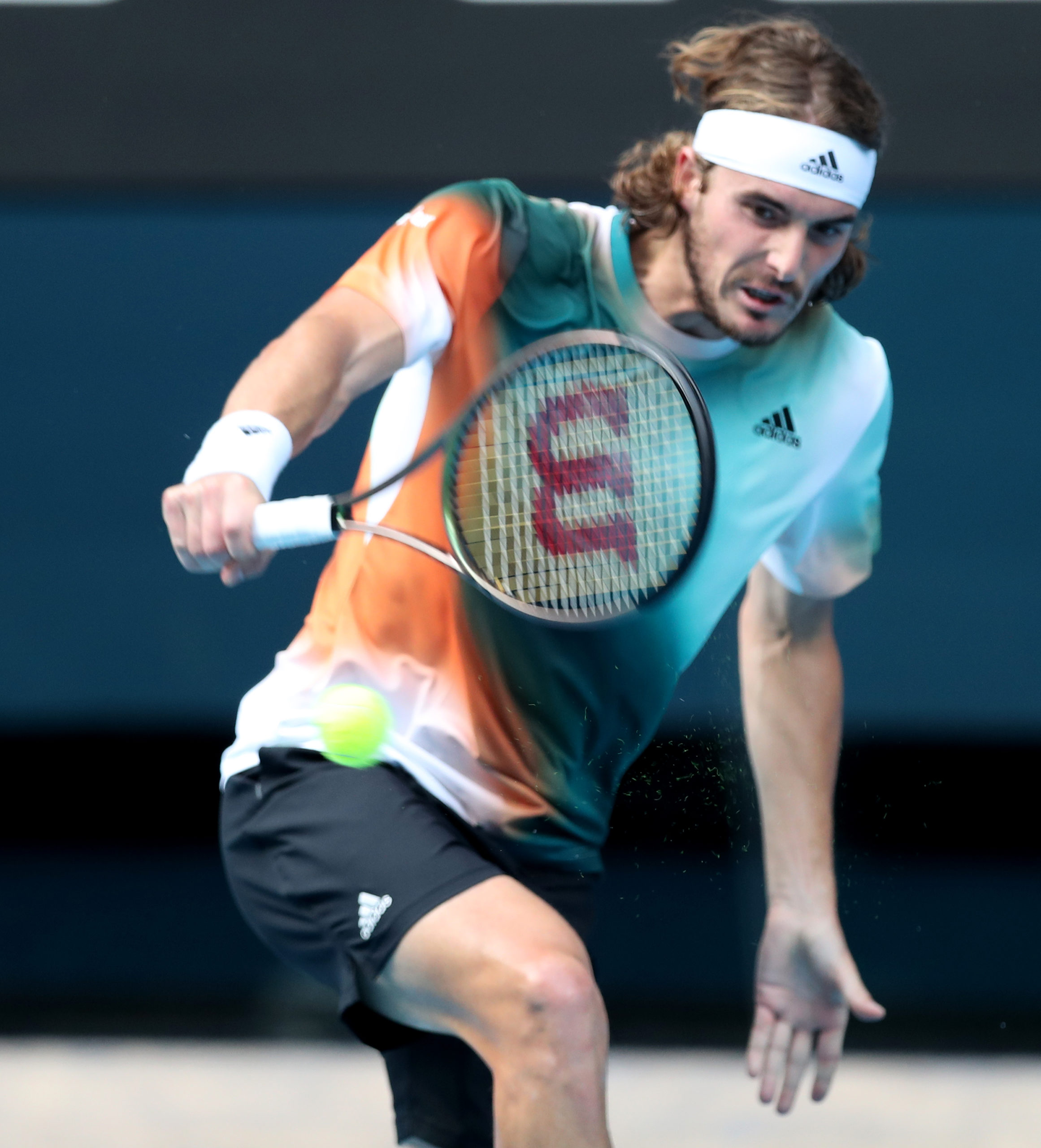 Stefanos Tsitsipas in mens quarter final action Australian Open Tennis 2022 Melbourne Park, Australia Day 10 Wednesday 26 January 2022 PHOTO BY KARL WINTER
