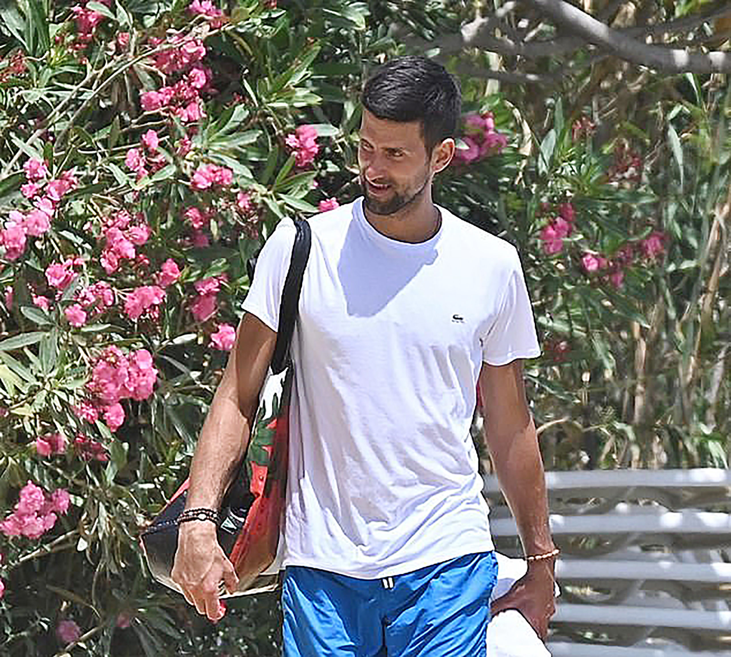 33 year old Djokovic was seen leaving a tennis practice session near his luxury Marbella home on Tuesday carrying a racket bag and wearing his sponsors Lacoste tennis equipment.