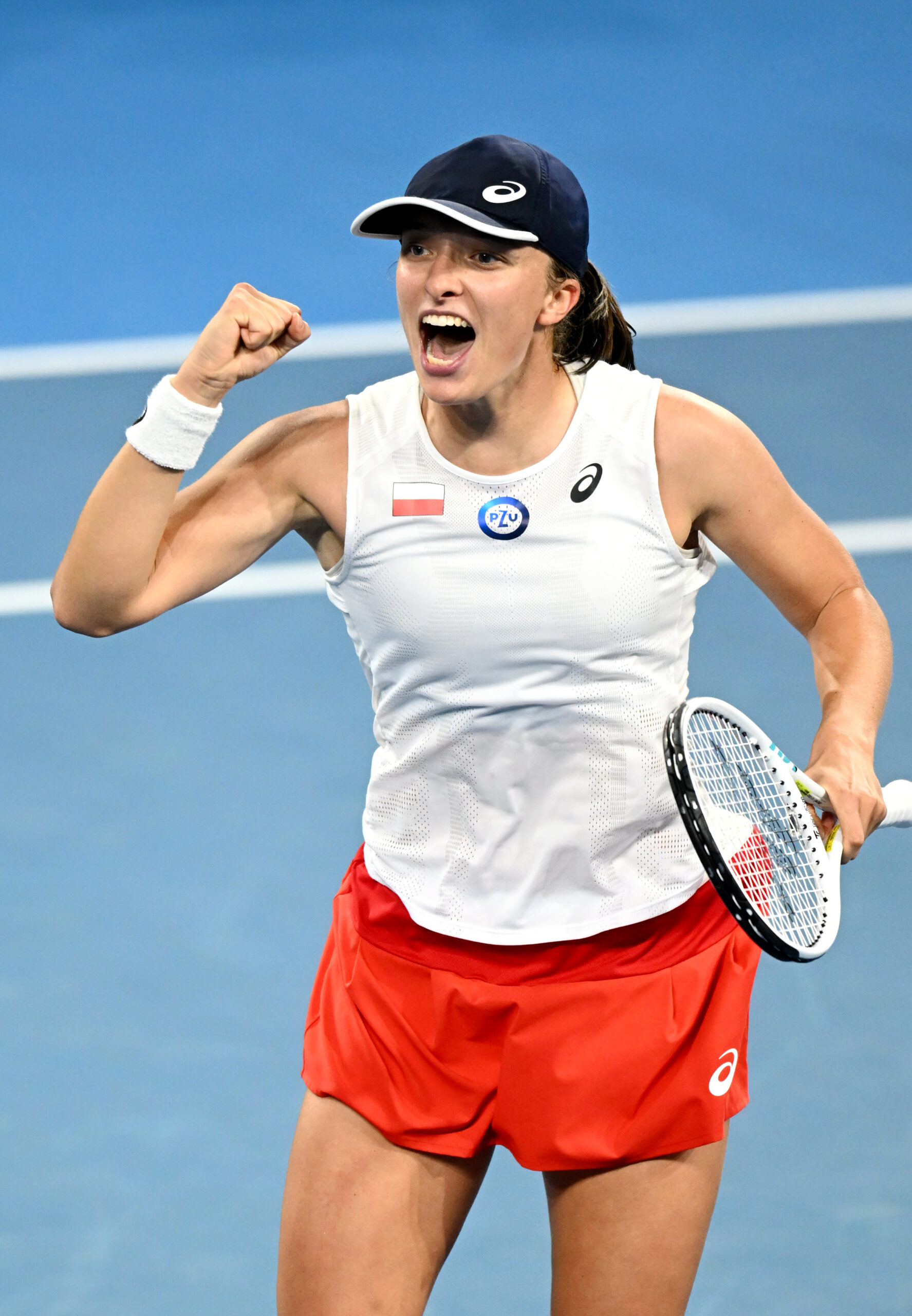 Iga Swiatek of Team Poland plays Belinda Bencic of Team Switzerland on Pat Rafter Arena during their Group B match on Day 5 of the 2023 United Cup in Brisbane on Monday, January 2, 2023. MANDATORY PHOTO CREDIT Tennis Australia/ Dan Peled
