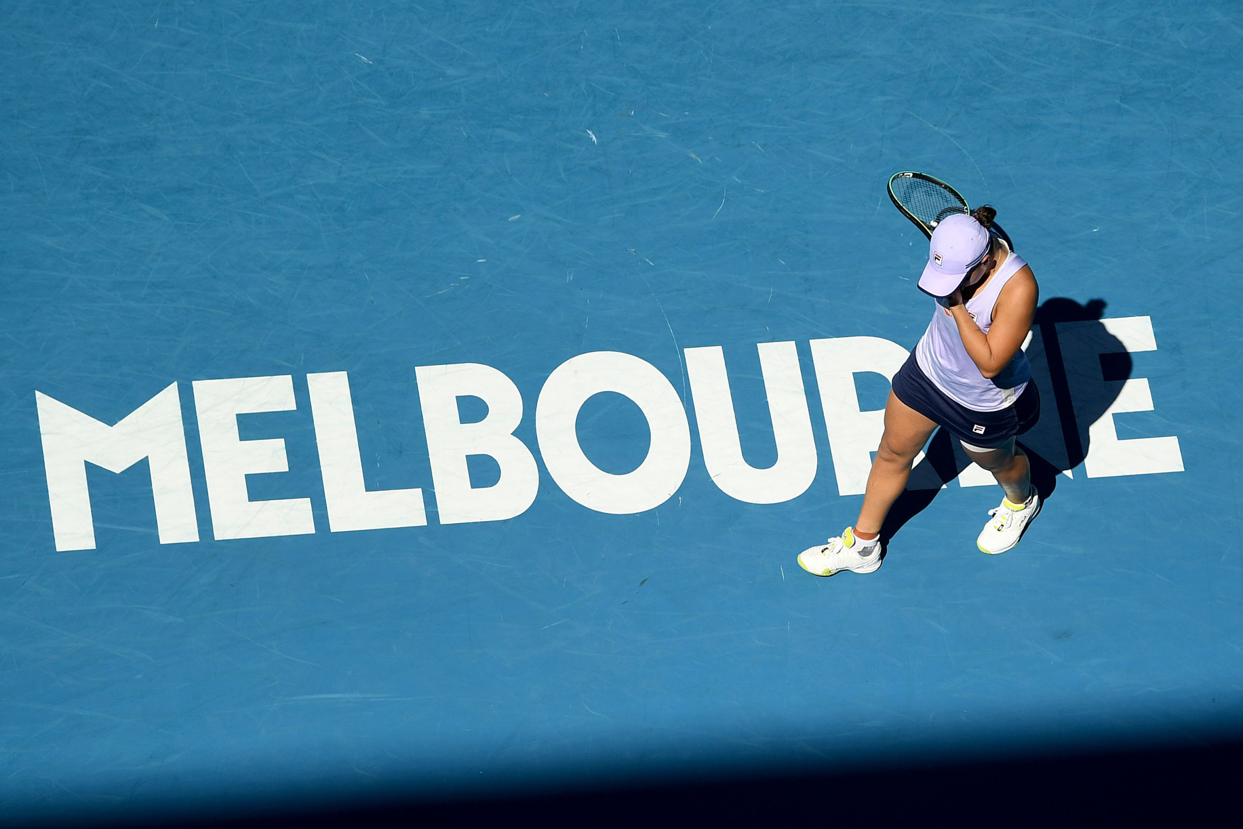 Ashleigh BARTY (AUS) reacts during her game against Karolina MUCHOVA (CZE) on Rod Laver Arena during Day 10 of the Australian Open at Melbourne Park on Wednesday, February 17, 2021. MANDATORY PHOTO CREDIT Tennis Australia/ MORGAN HANCOCK