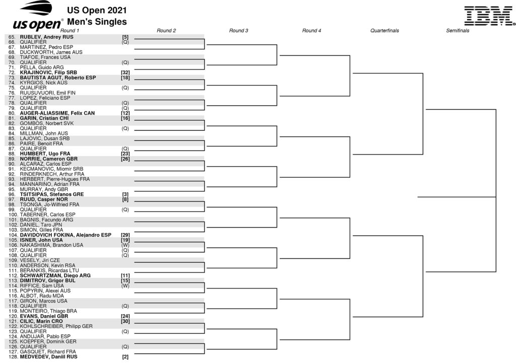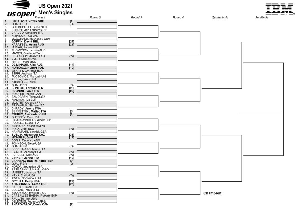 US Open 2021 Men’s singles draw