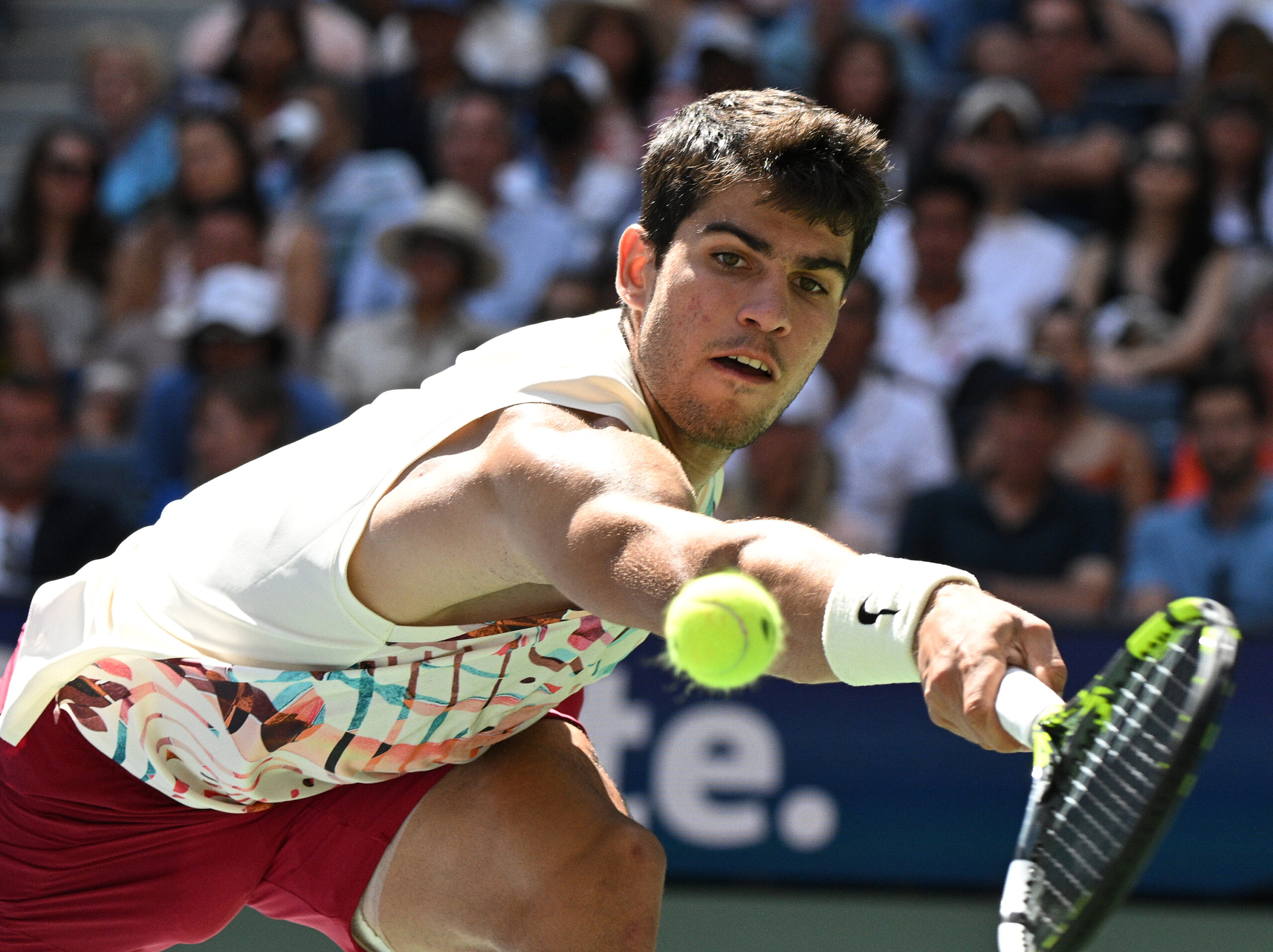 Carlos Alcaraz continued to excel in the defence of his US Open title as the top seed advanced to the fourth round of the US Open 6-2, 6-3, 4-6, 6-4 over Dan Evans on Saturday.