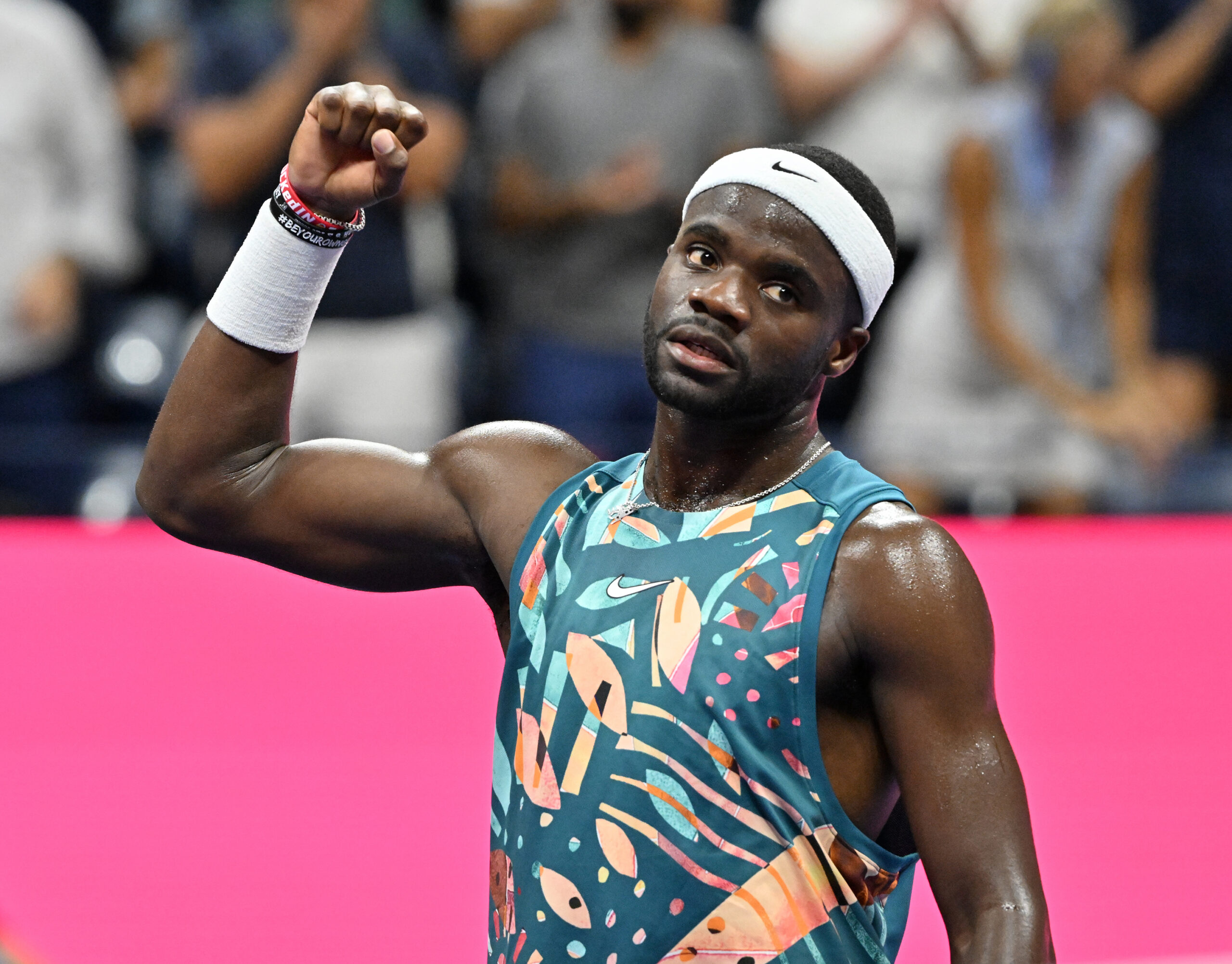 Main photo:- Francis Tiafoe celebrates victory – by Roger Parker International Sports Fotos Ltd