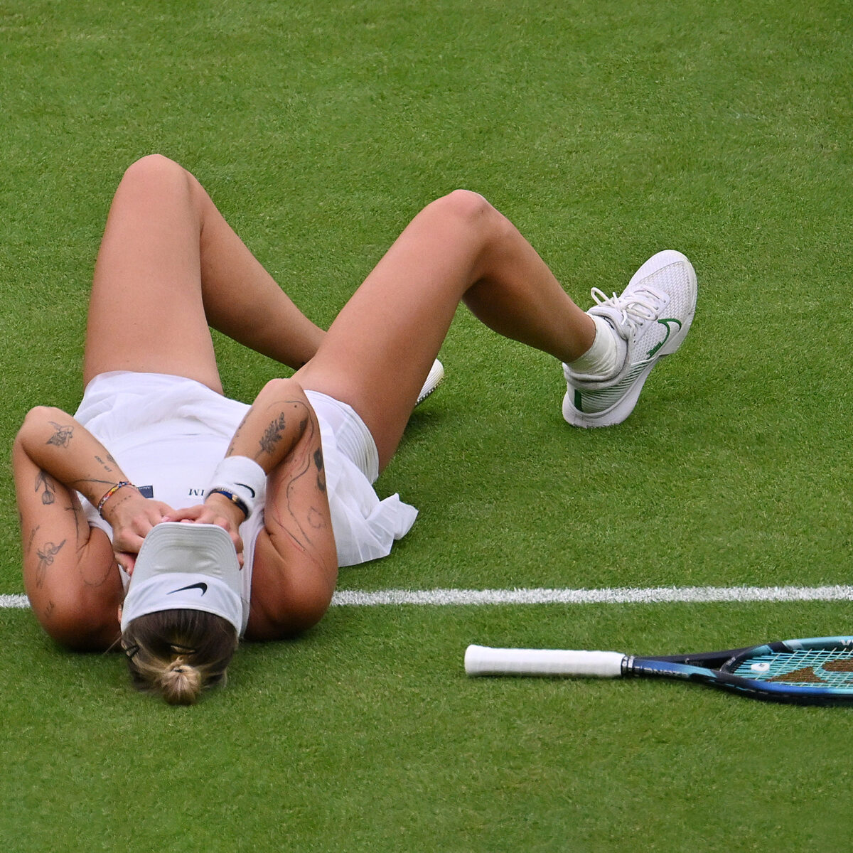 Main photo:-Marketa Vondrousova celebrates as she wins Wimbledon 2023