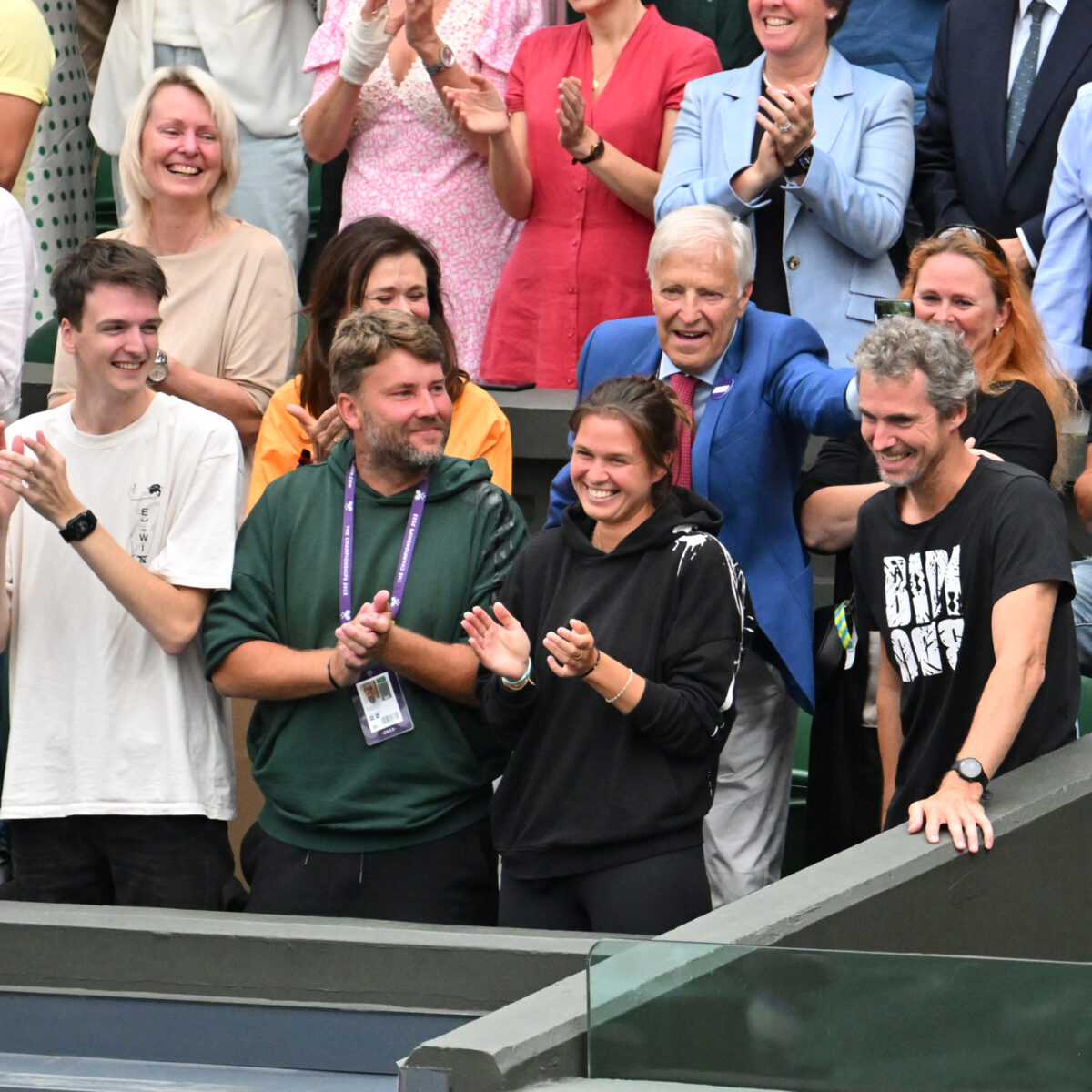 Main photo:- London Wimbledon 2023. Marketa Vondrousova’s Coach Jan Mertl (right) will have the insignia on an unspecified part of his person as part of the deal with the world No 42, who is a big fan of body art and has countless tattoos.Husband Stepan Simek (left) was relieved of cat sitting duties at home in Sokolov Cechoslovakia and flew in to watch today’s final by Roger Parker International Sports Fotos Ltd