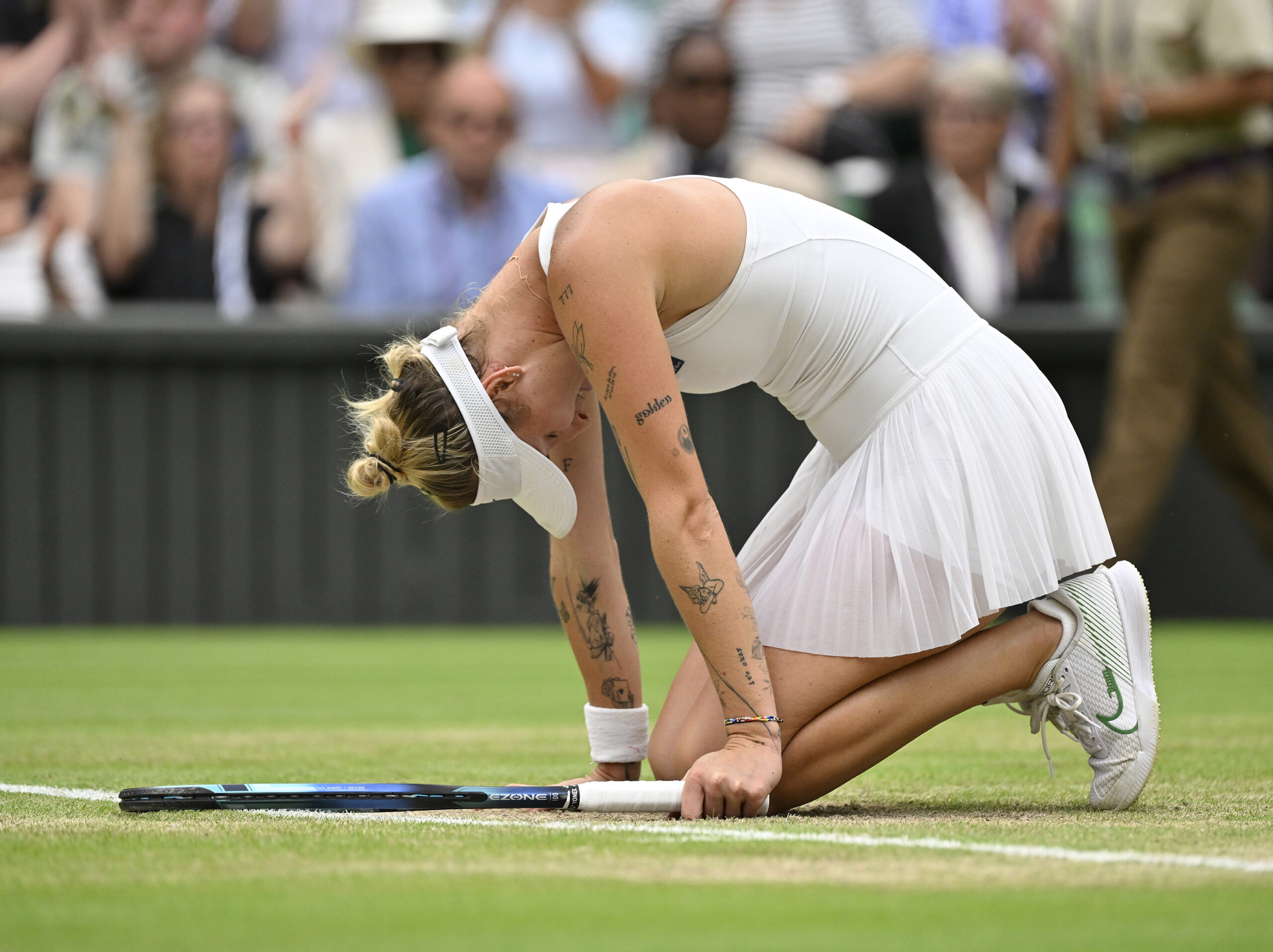 Main photo:Marketa Vondrousova sinks to her knees as she wins wins semi final match by Roger Parker International Sports Fotos Ltd